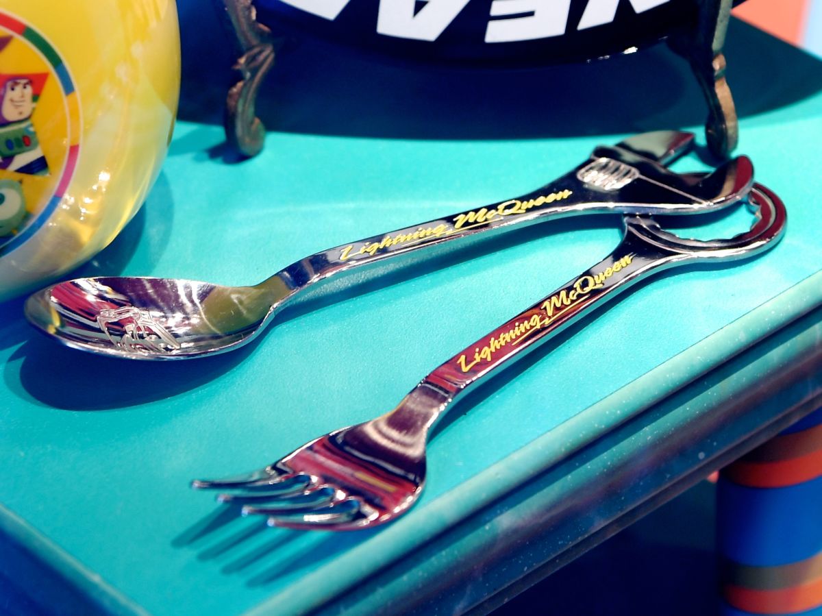 ライトニング・マックィーンのお顔がデザインされたスプーンとフォーク。