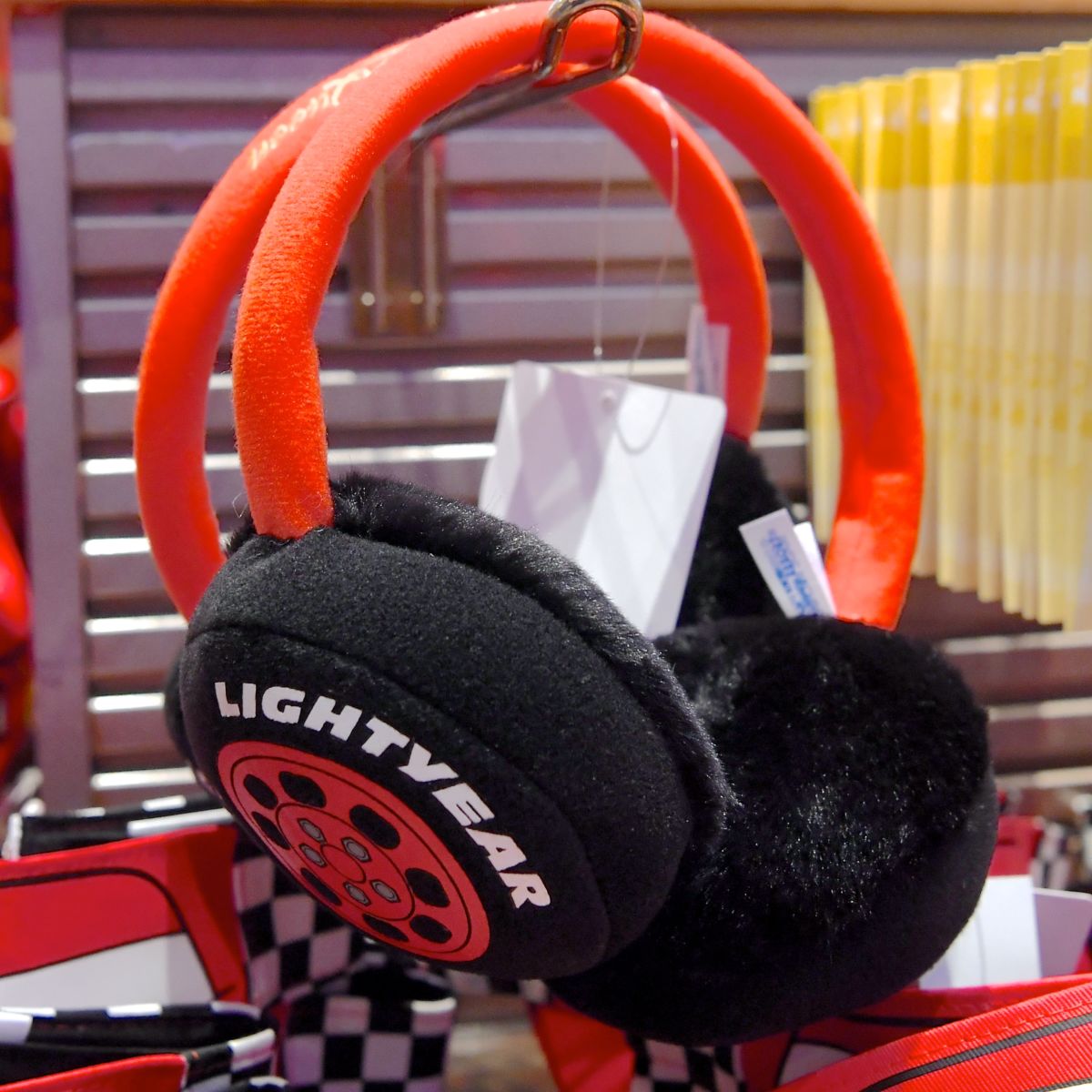 マックイーンが、はいているタイヤをモチーフにしたイヤーマッフル(耳あて)☆
