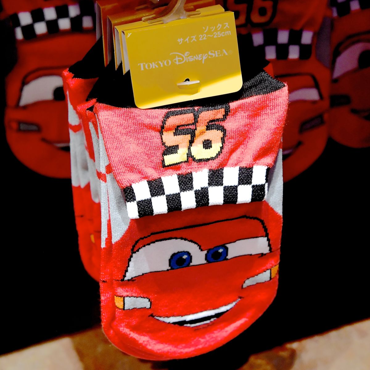 マックィーンのお顔がデザインされた靴下。