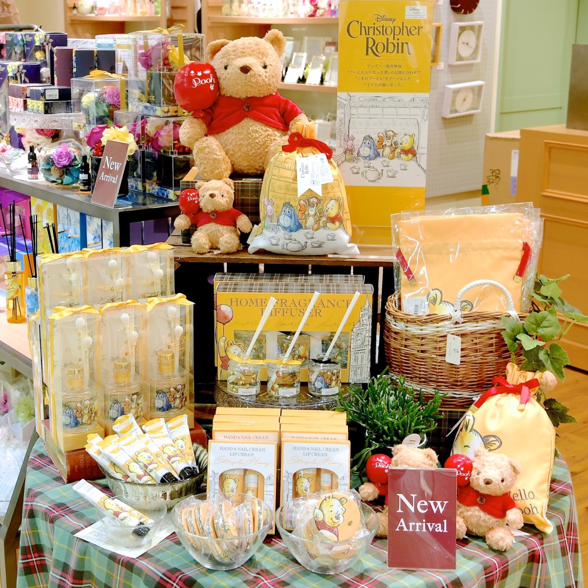 イギリスの街並みに溶け込んだかわいいプーさんたちのイラストがデザインされたグッズが盛りだくさんです☆