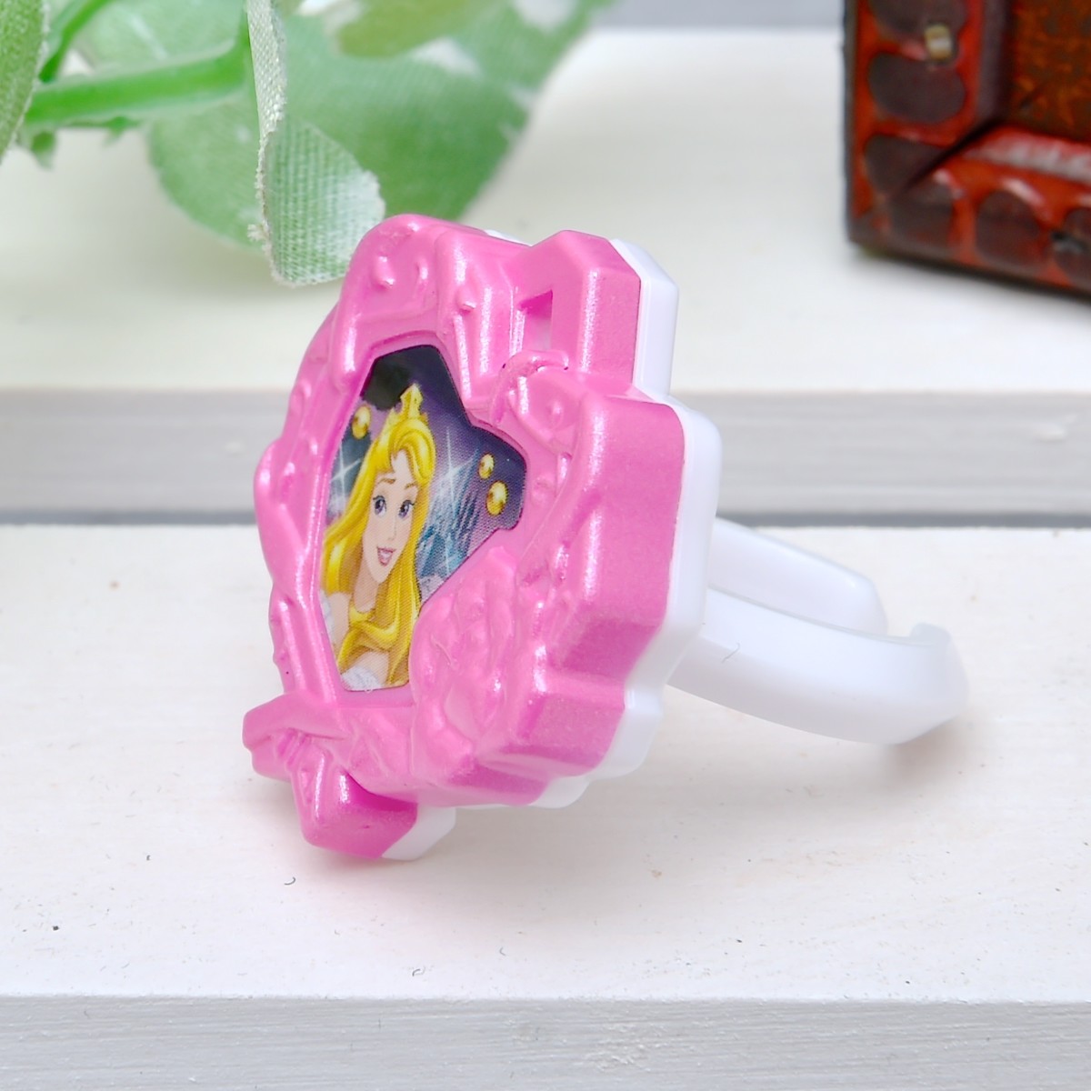 ディズニー映画『眠れる森の美女』のディズニープリンセス「オーロラ姫」のゆびわ。