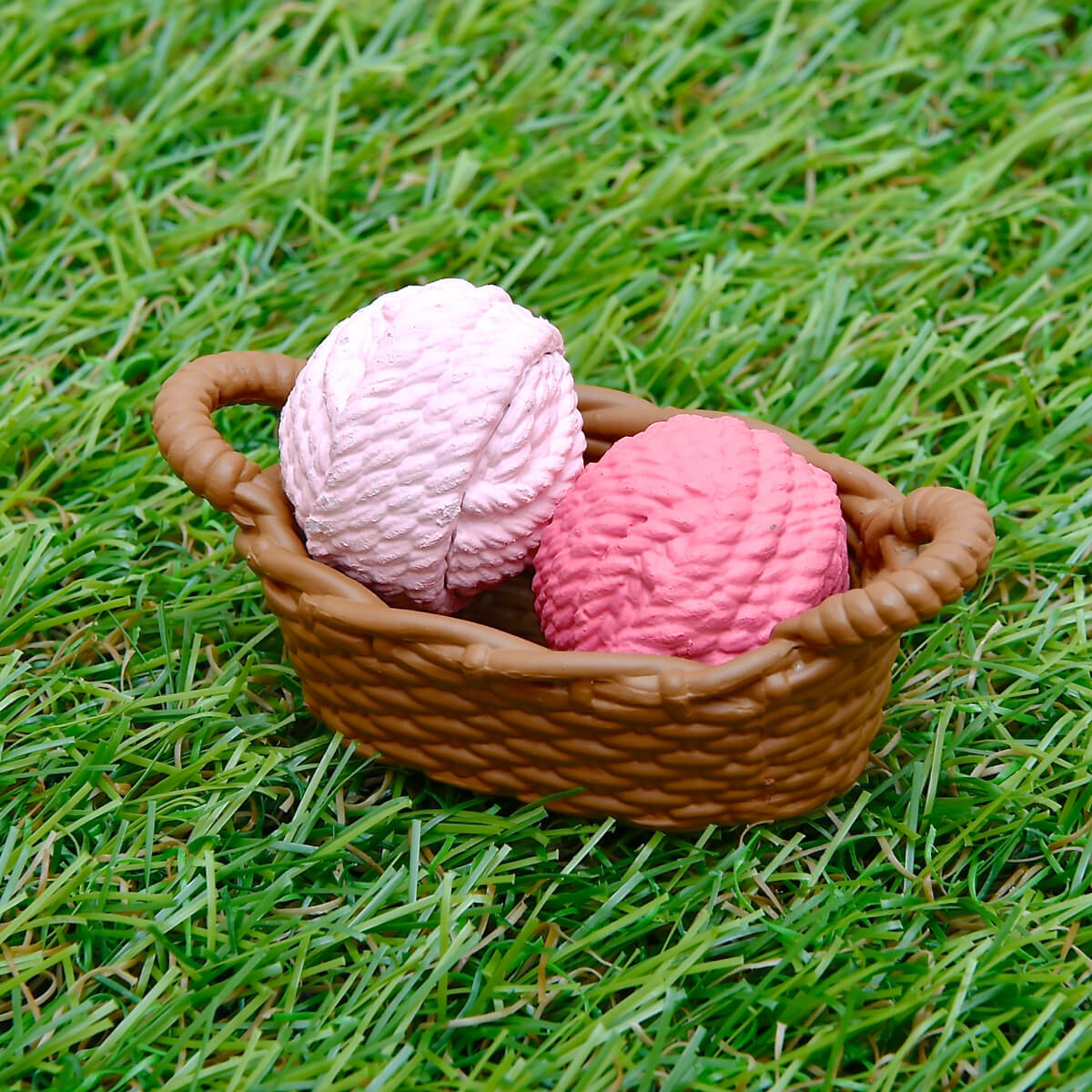 かごに入れられたピンクと紫の毛糸の玉がついています。