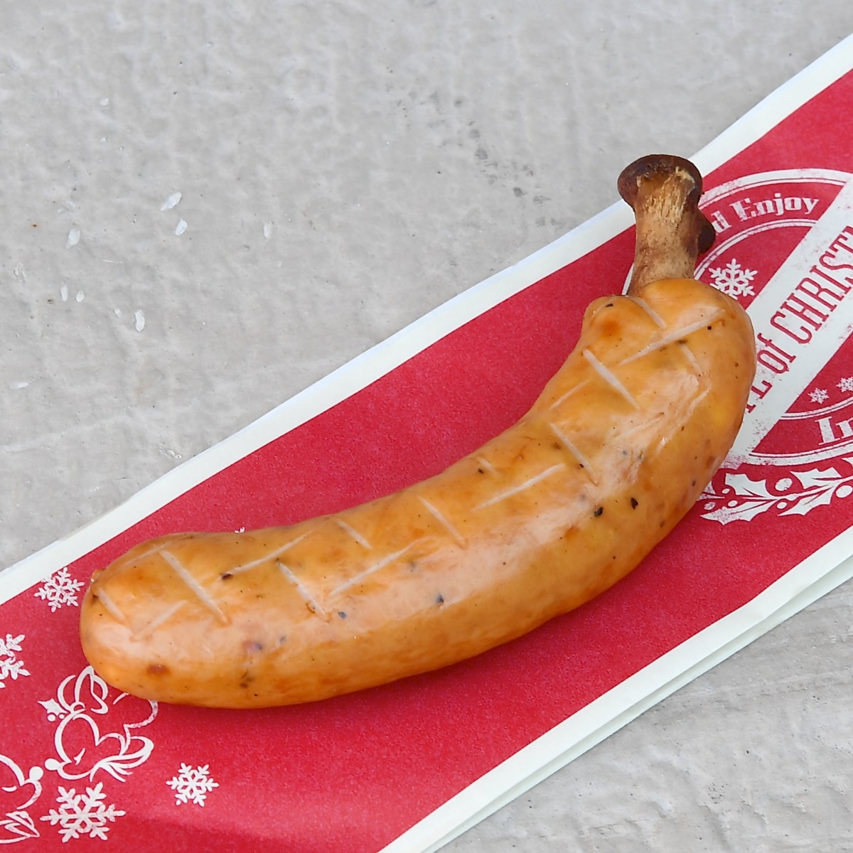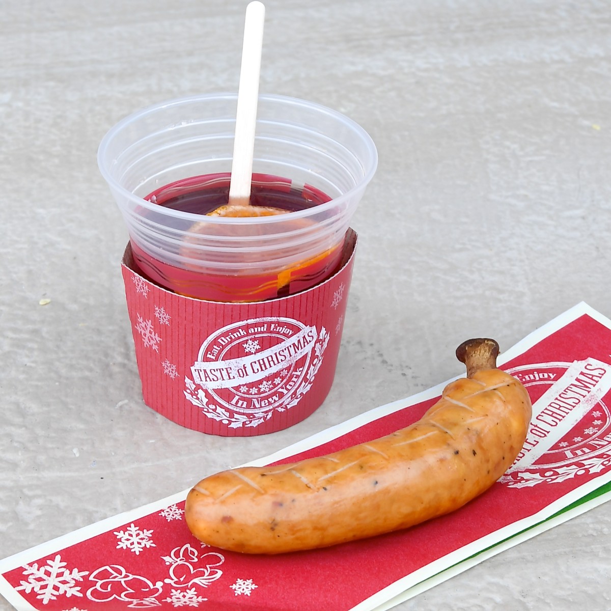 バーナクル・ビルズでは、クリスマスらしいパッケージに包まれた骨付きソーセージ(チーズ入り)と、ホットロゼワインカクテルが楽しめます☆