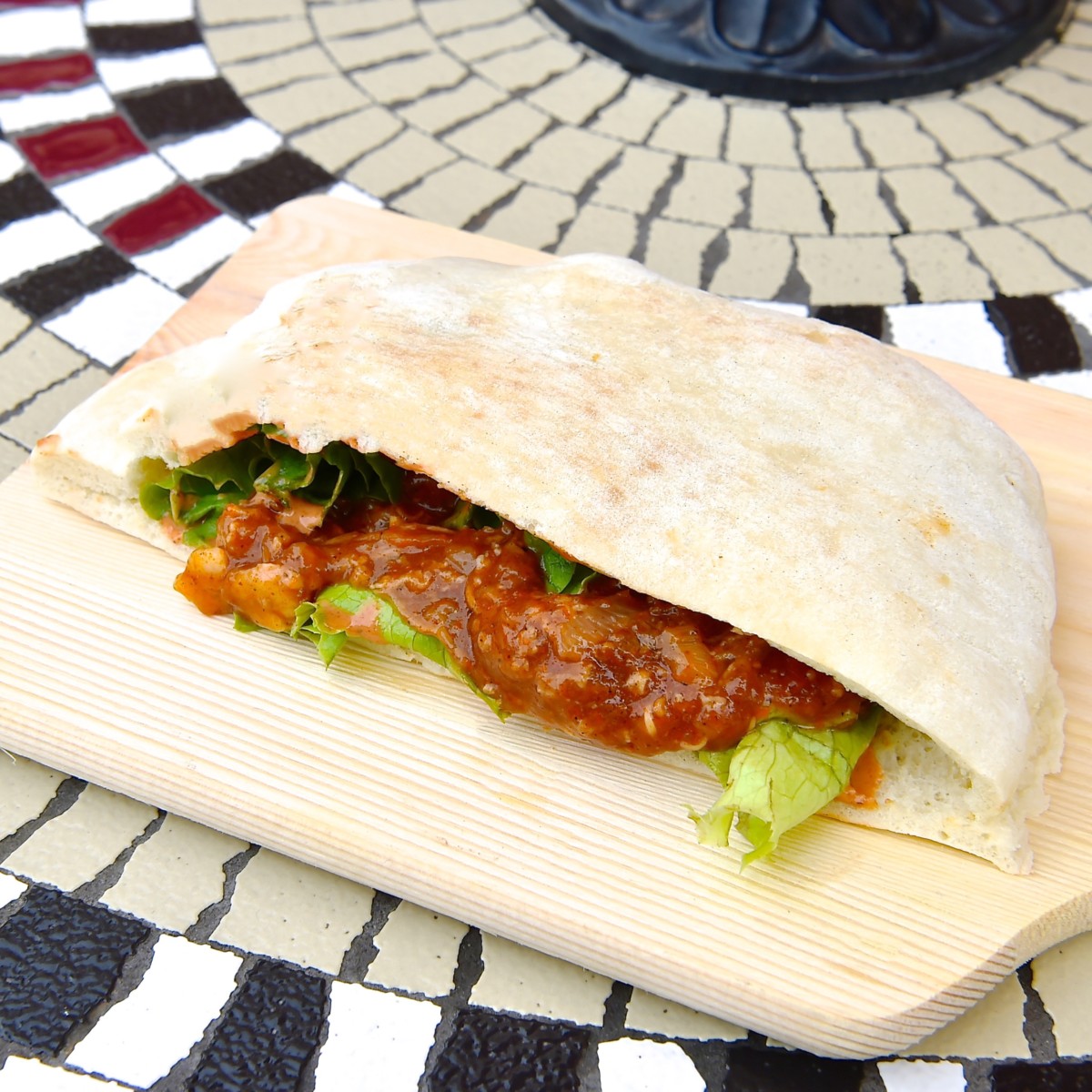 英語ではpocket bread(ポケットブレッド)ともいわれるピタパンにBBQビーフをたっぷりとサンド☆