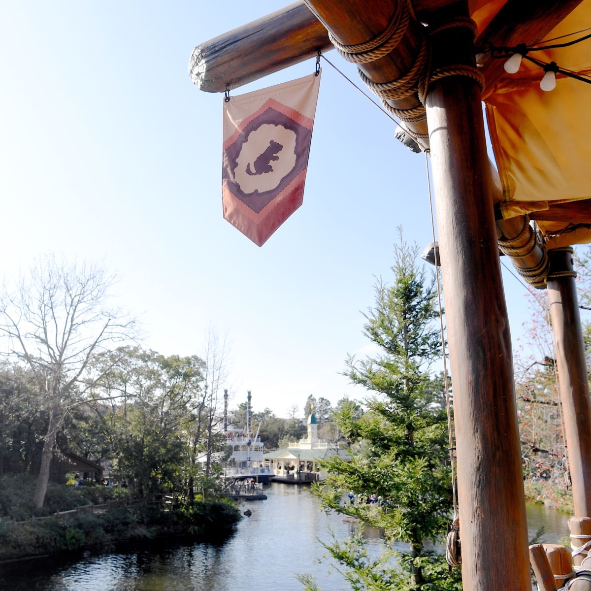 テラス席からはアトラクション「蒸気船マークトウェイン号」と「ビーバーブラザーズのカヌー探険」を見ることもできます。
