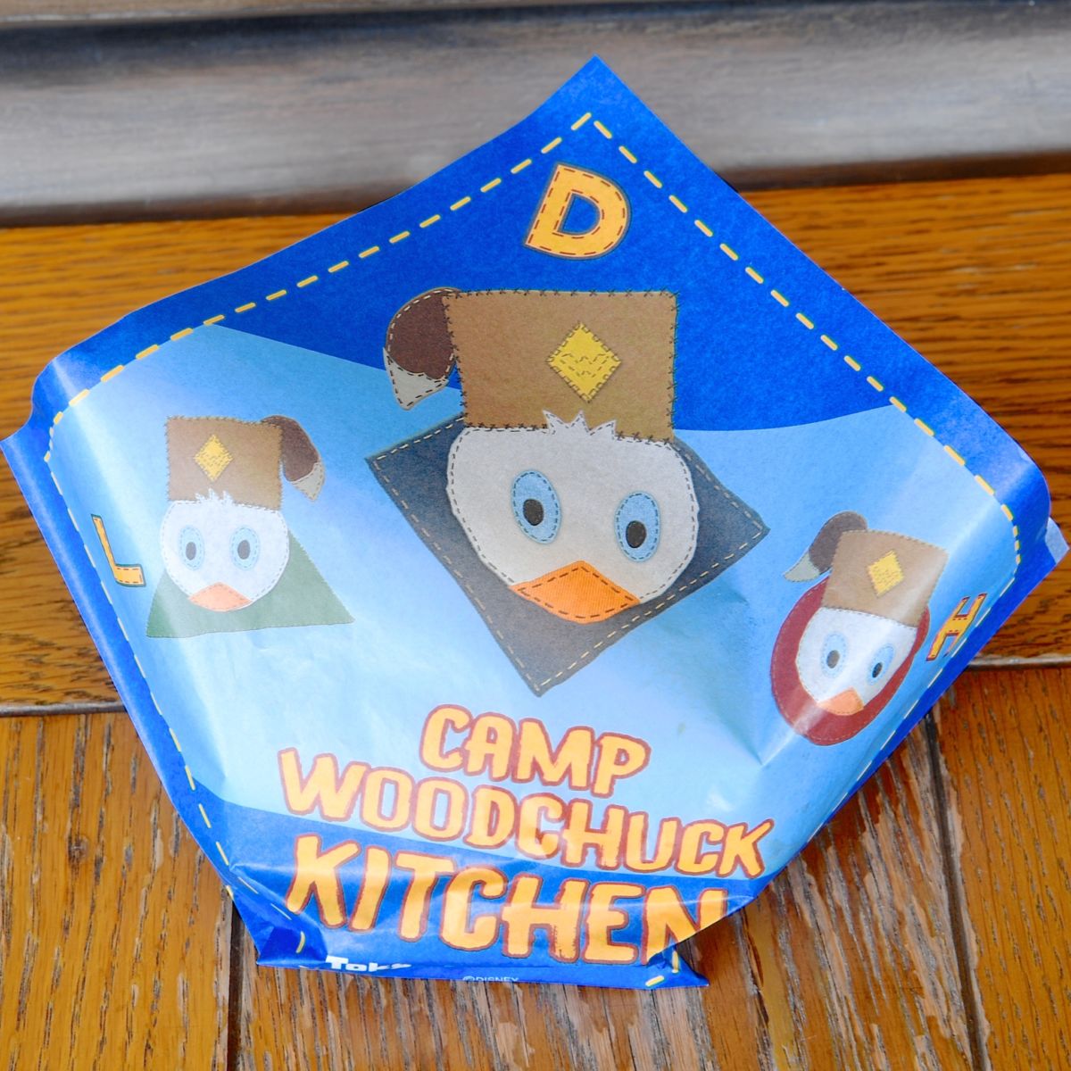 ヒューイ、デューイ、ルーイがデザインされたかわいいパッケージで提供されている「キャンプ・ウッドチャック・キッチン」グランドメニュー。