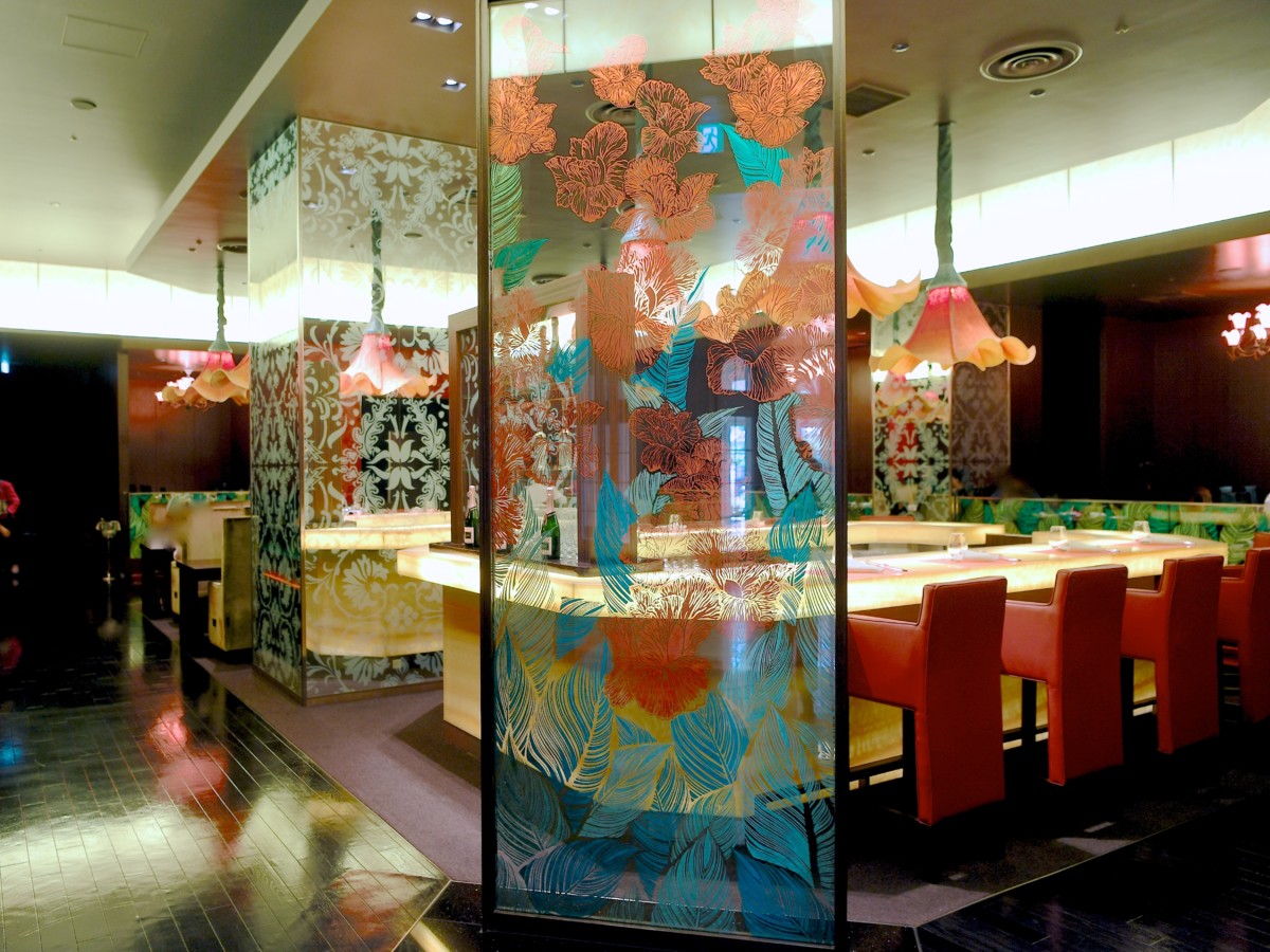店内にはウォルト・ディズニーの愛したカンナの花をモチーフにしたモダンなインテリア。