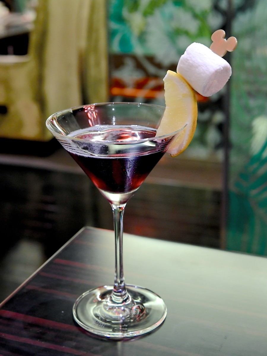 クランベリージュース、バイオレットシロップ、 ブルーシロップ入りの甘めのデイジーカラーのドリンクはレモンをしぼってからいただくのがおすすめです。