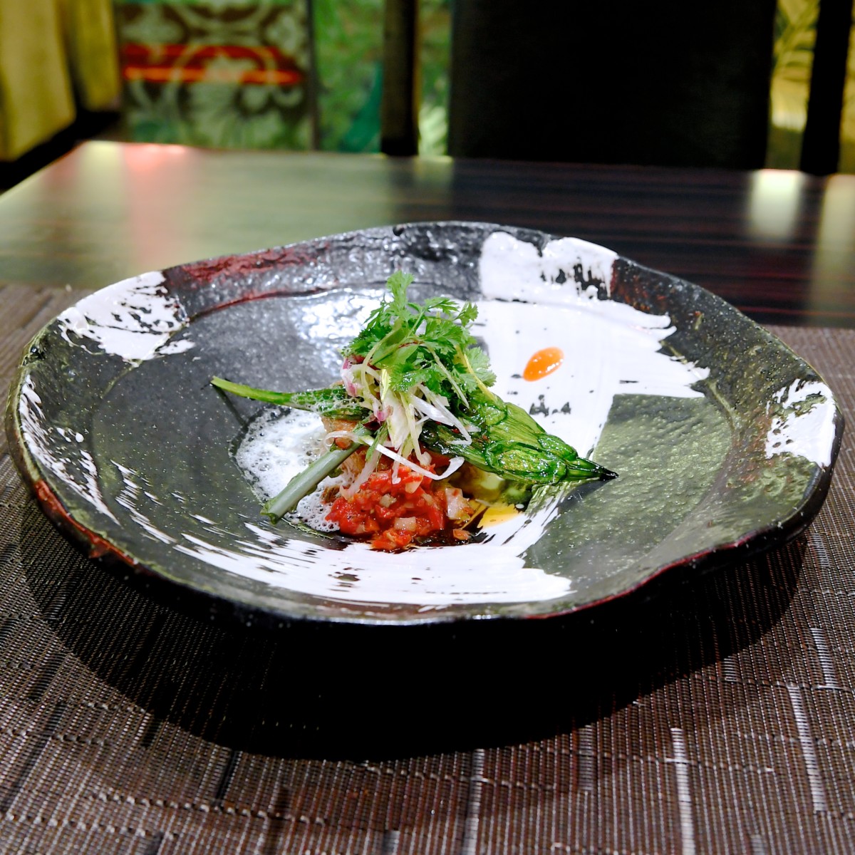 ピーマンを使用したサルサソース、西京味噌のフォーム、ゆず胡椒のソースと様々なソースで味わえます。