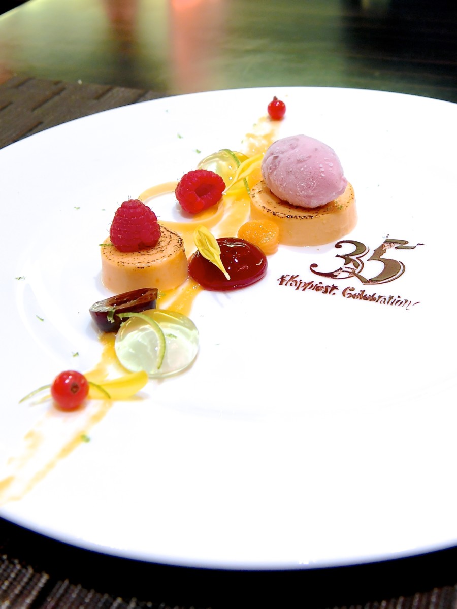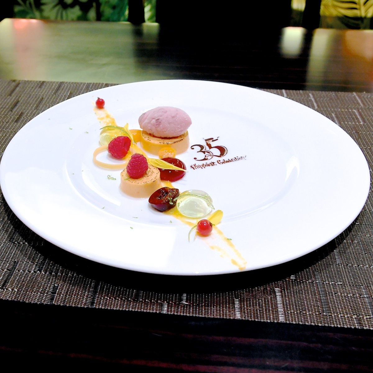 デザートには東京ディズニーリゾート35周年“Happiest Celebration!”のロゴをデザイン。