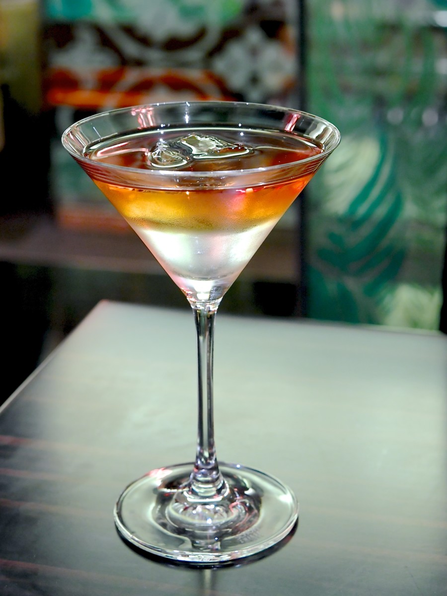 美容に良いルイボスティーでさっぱり、ピーチリキュールやアマレット(杏仁フレーバー)シロップで上品な甘さが味わえる見た目も美しいデザートカクテルです。