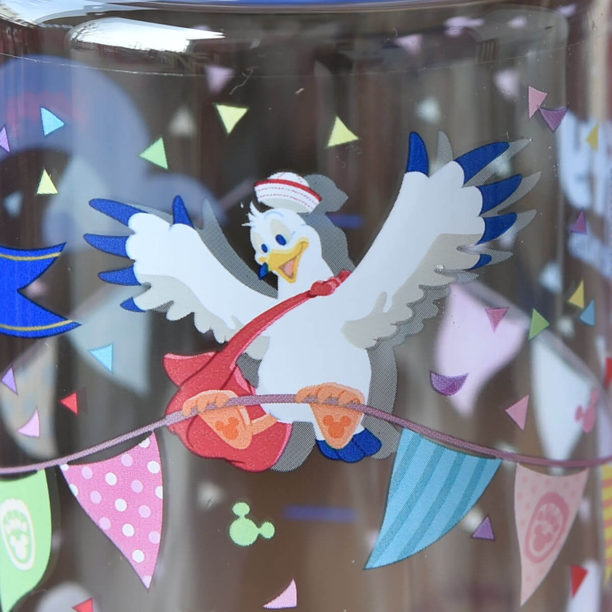 ガーランドが飾り付けられ、コンフェティが舞う華やかでかわいいドリンクボトル。