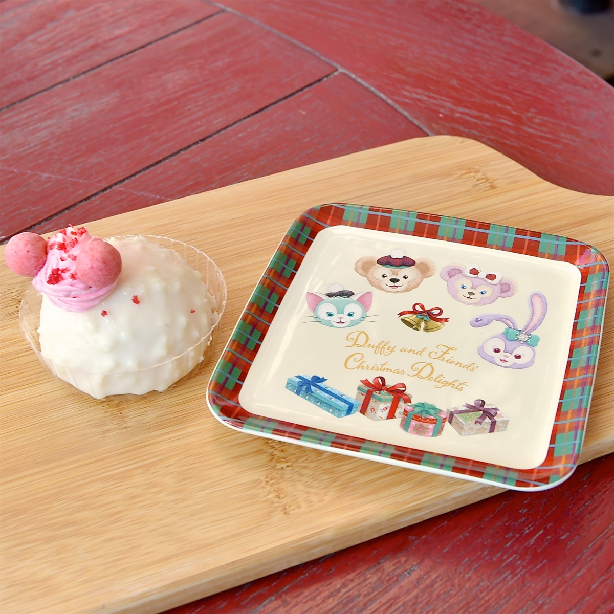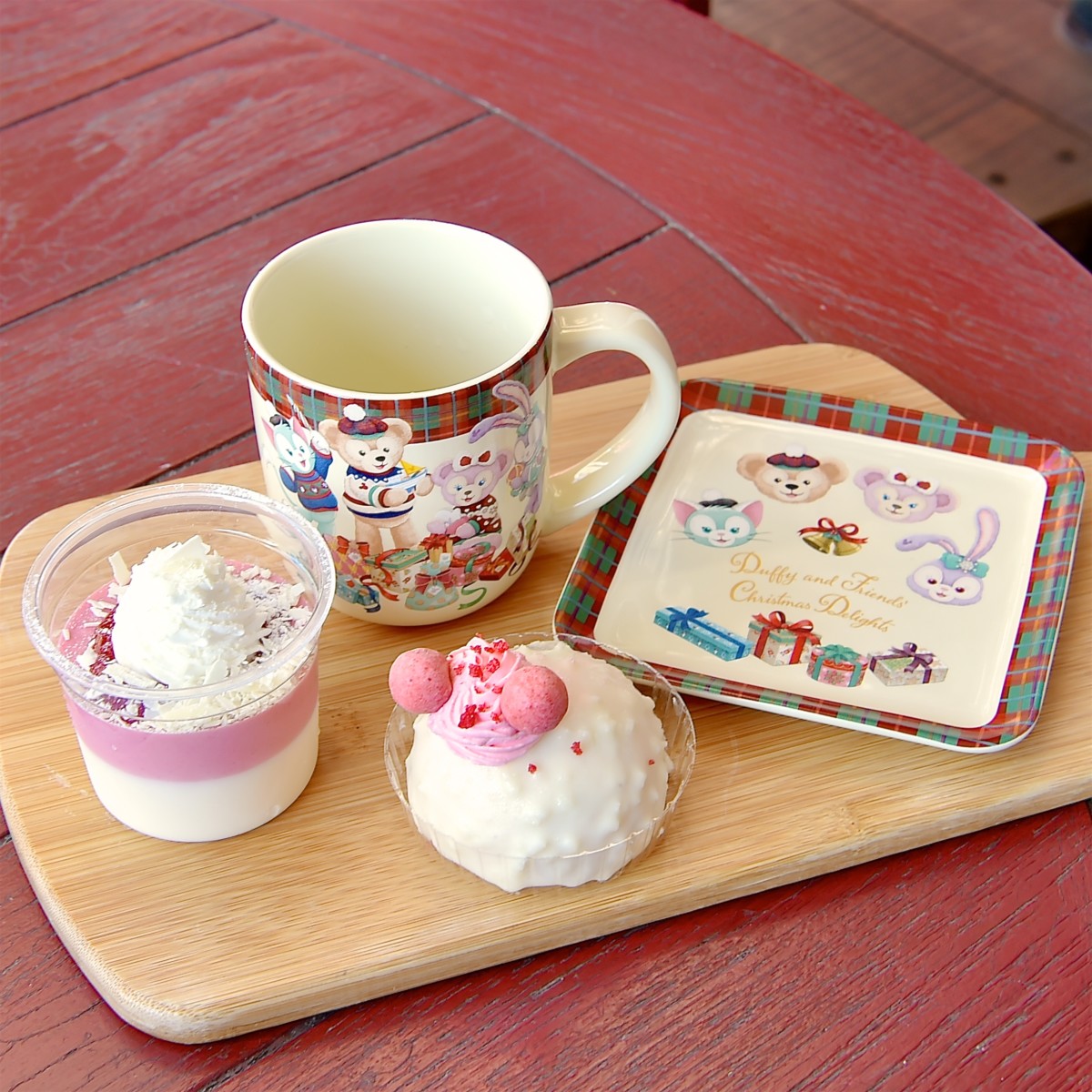 今回は、クリスマスの朝のダッフィー&フレンズを描いた“ダッフィーのクリスマス”デザインのかわいいスーベニアグッズ付きデザートを紹介します☆