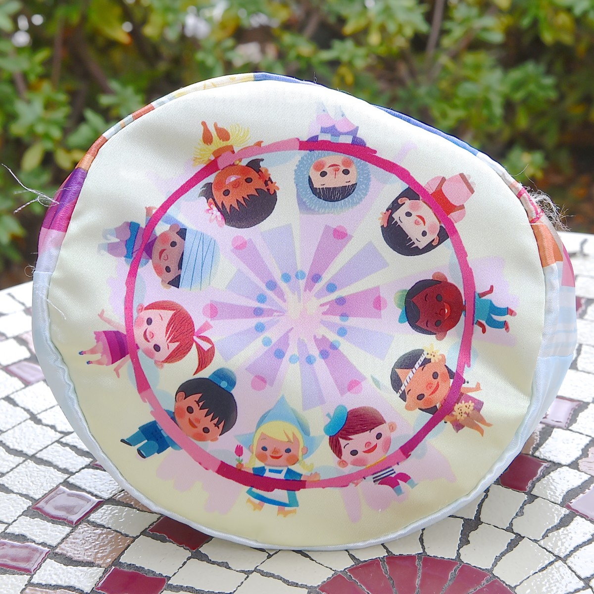 世界中のこどもたちがデザインされた大きめサイズの巾着型ランチケース。