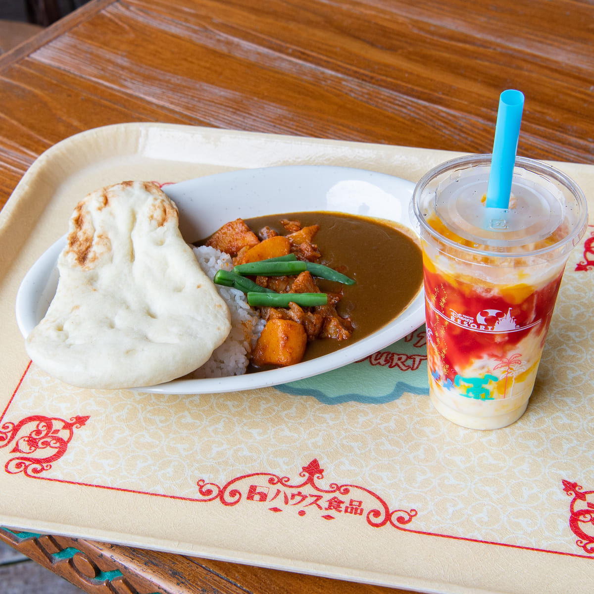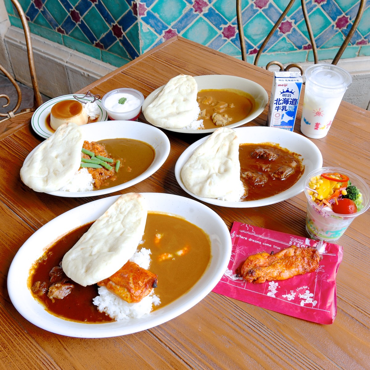 ディズニー映画『アラジン』でもおなじみの空飛ぶじゅうたんが王国中から運び込んできた本格カレーやタンドリーチキンがいただけます!
