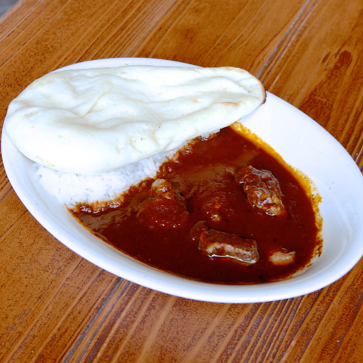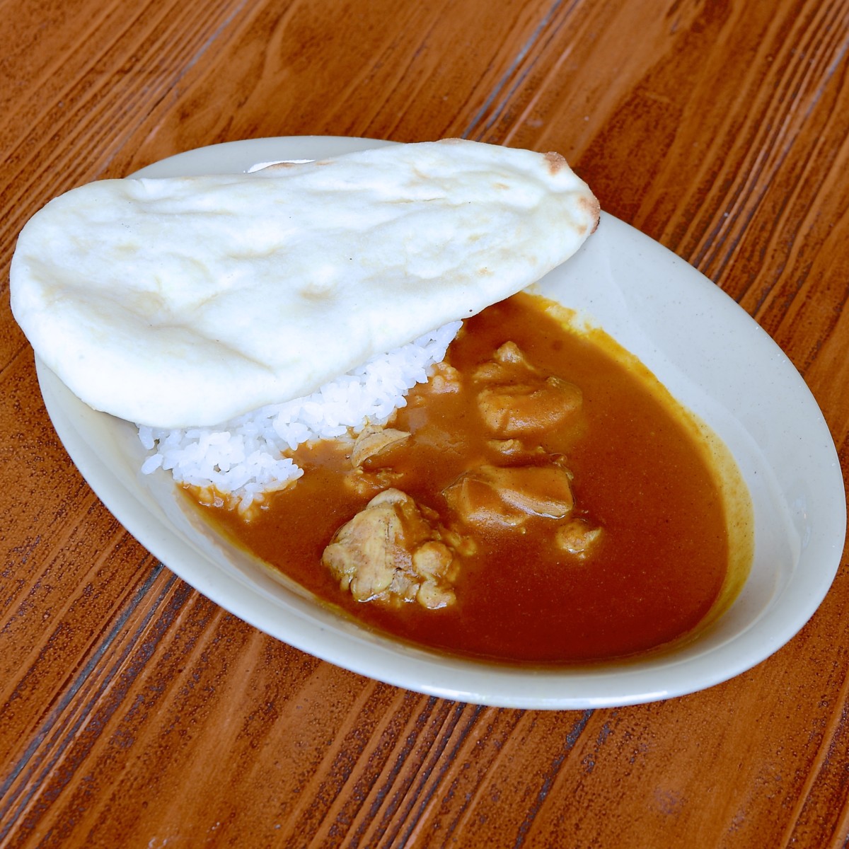 甘口で、スパイスの風味がしっかりと感じられるチキンカレー。
