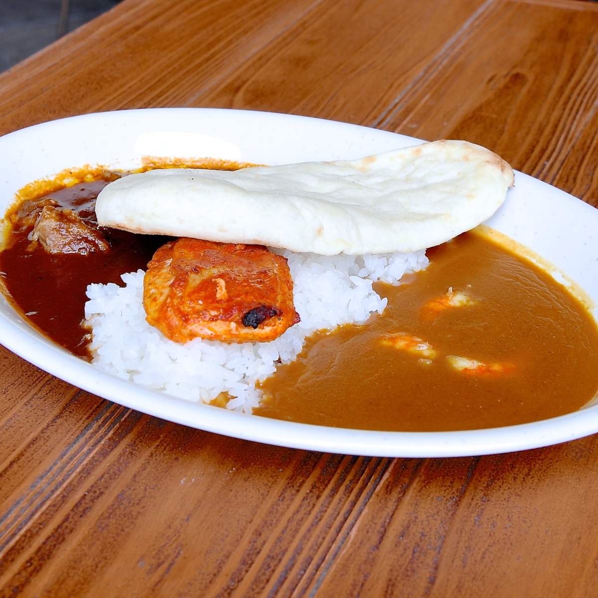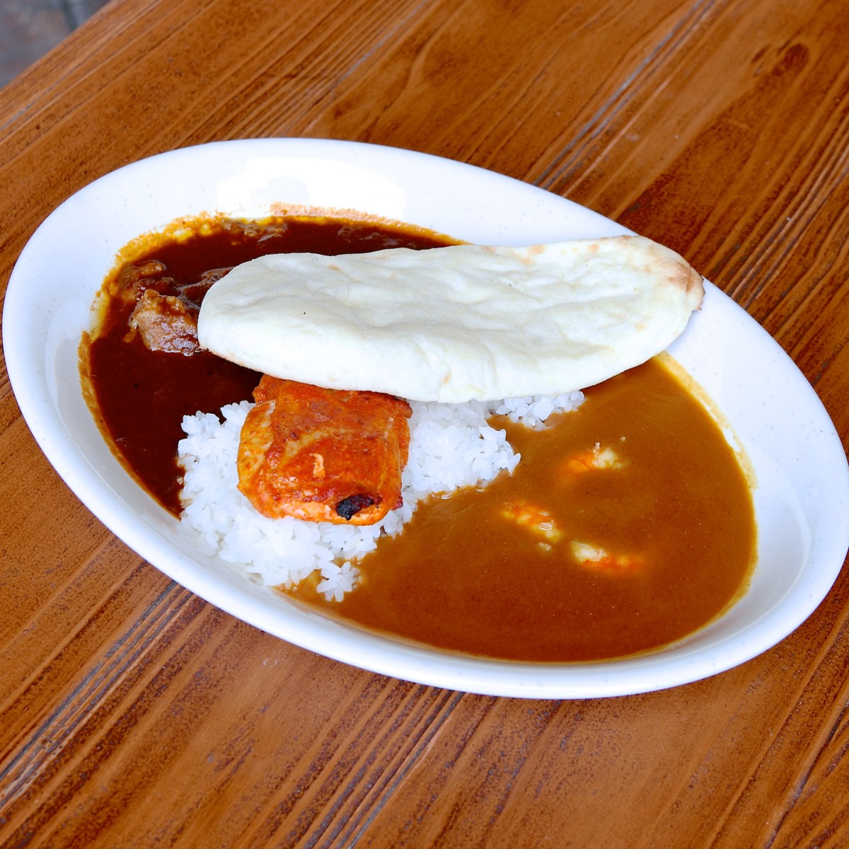 コンビカリー、タンドーリチキン添え(中辛ビーフ&甘口シュリンプ)