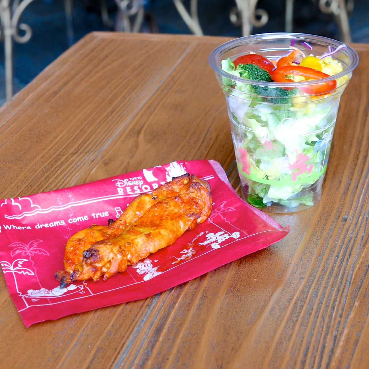 サイドオーダーは「カスバ・フードコート」の名物料理のタンドリーチキンとカップサラダの2種。