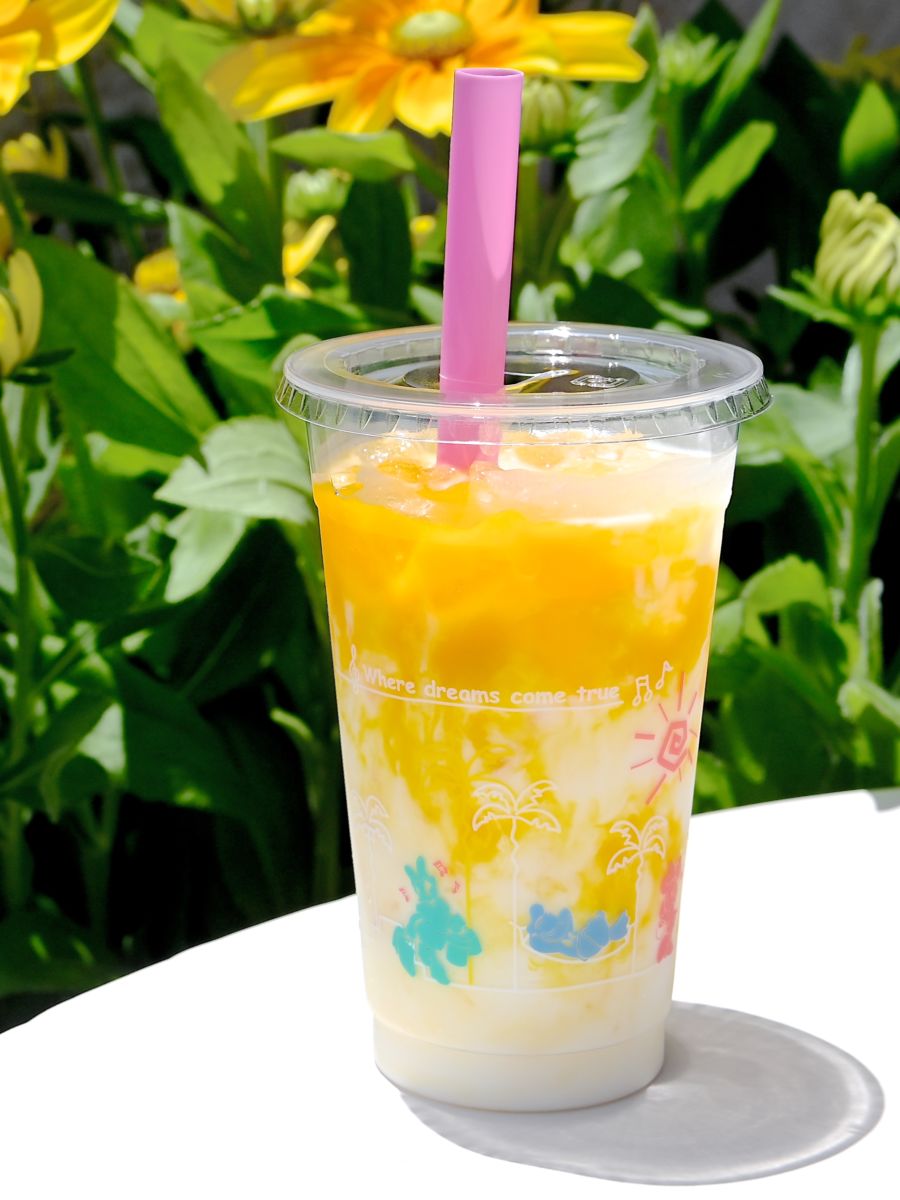 オレンジゼリーとマンゴーの果実が入ったまろやかなラッシー。