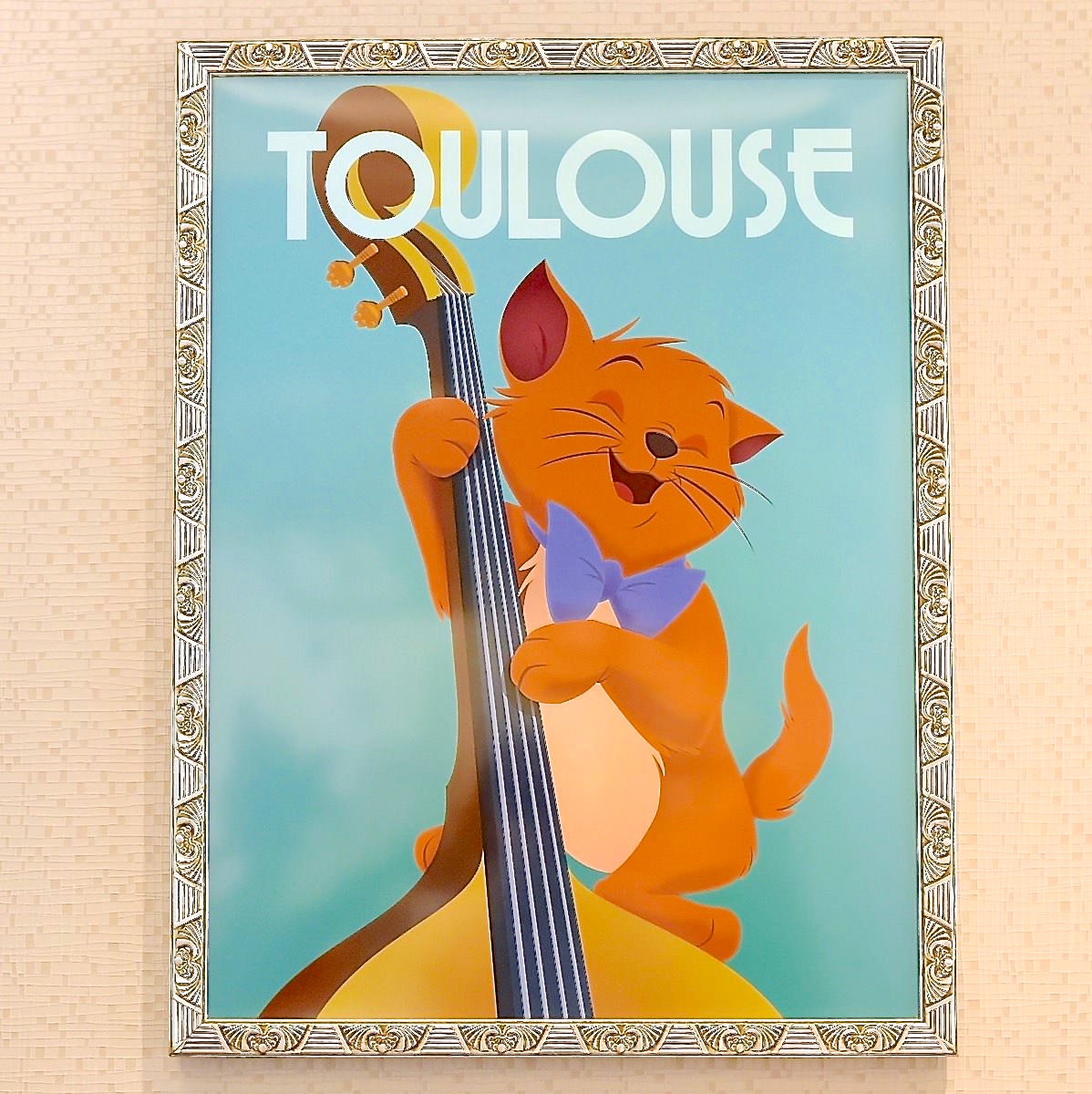 青い蝶ネクタイをしてギターをひく“トゥルーズ”の絵画、