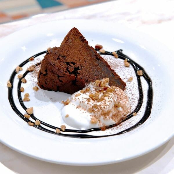 しっとり濃厚なチョコレートケーキはたっぷりのホイップクリームと一緒に。
