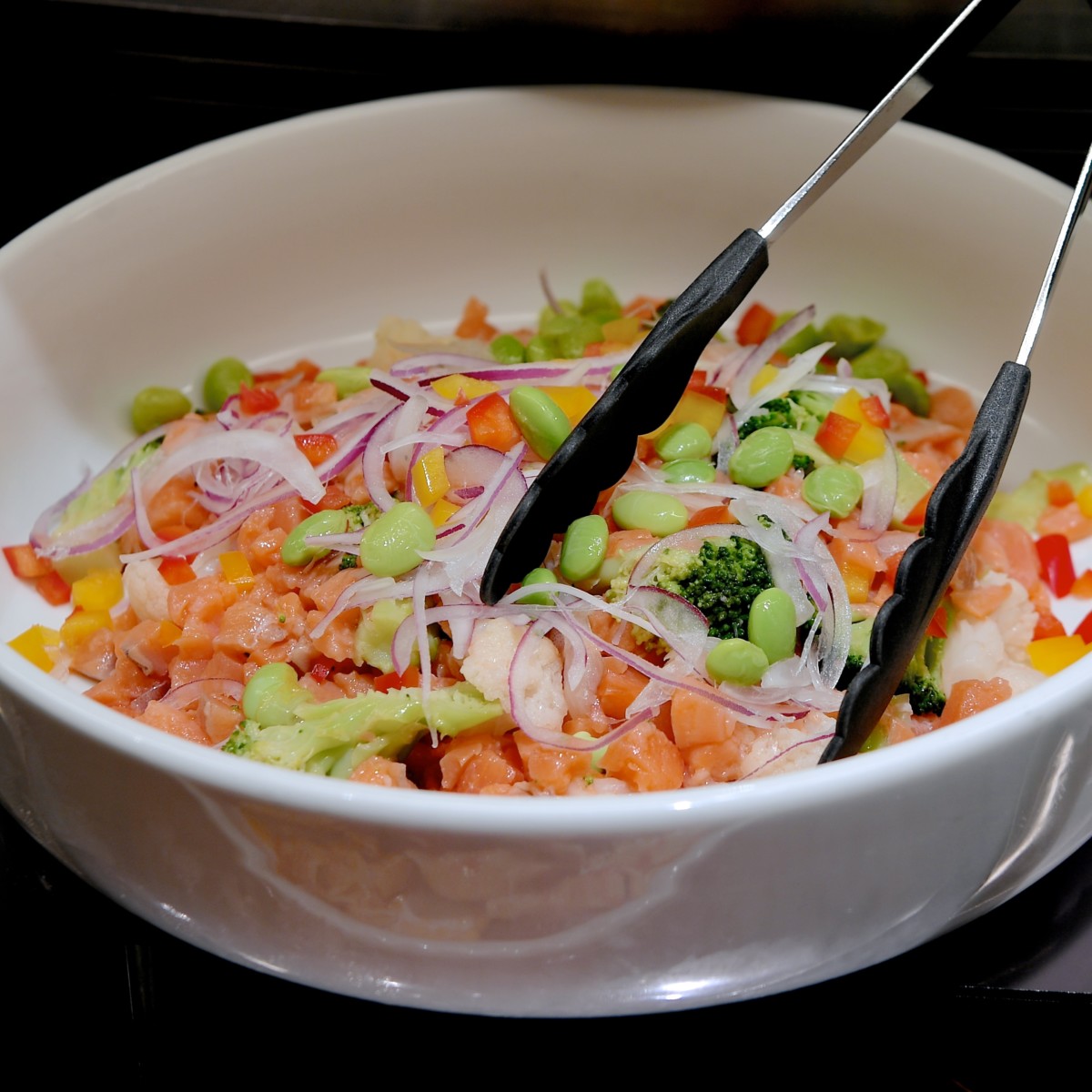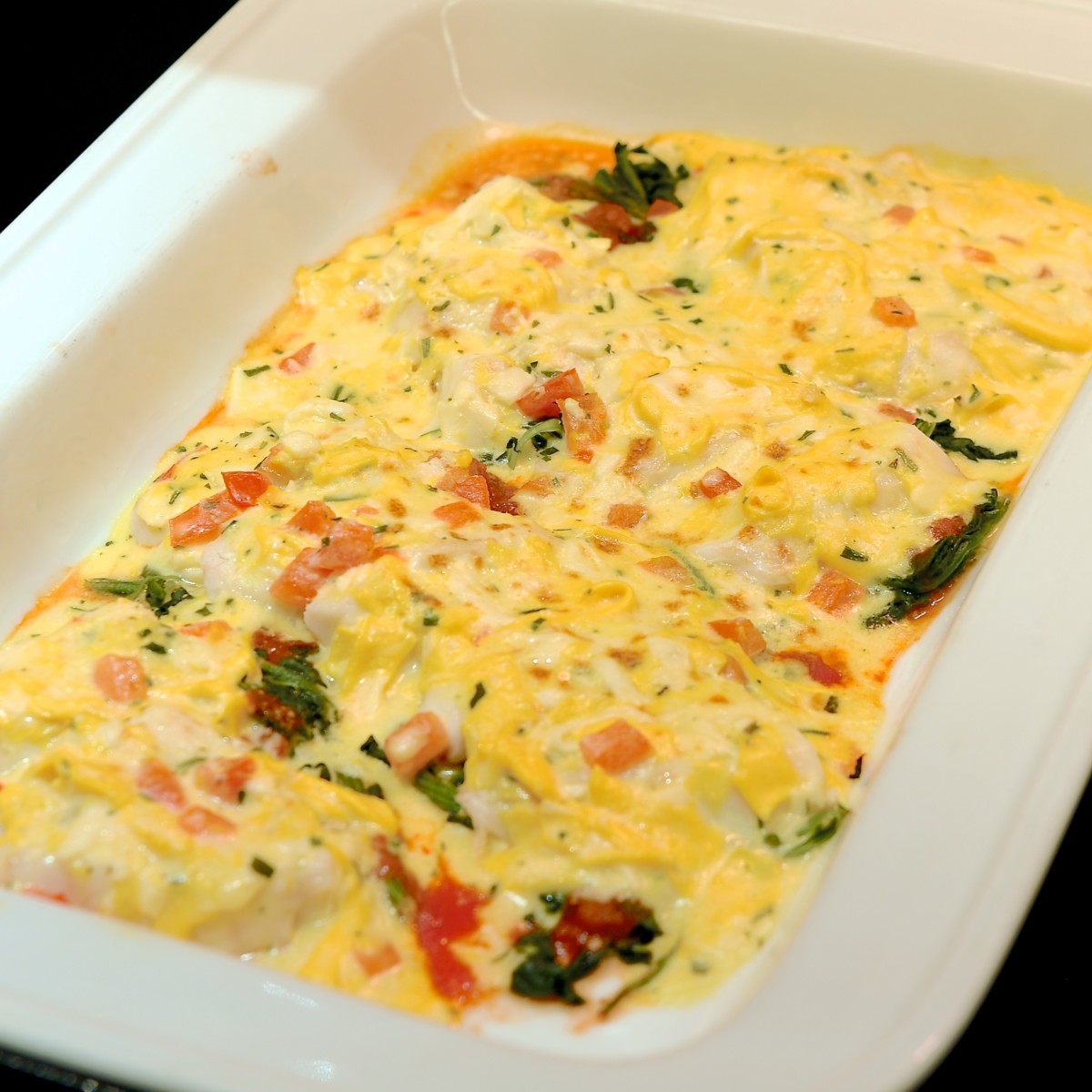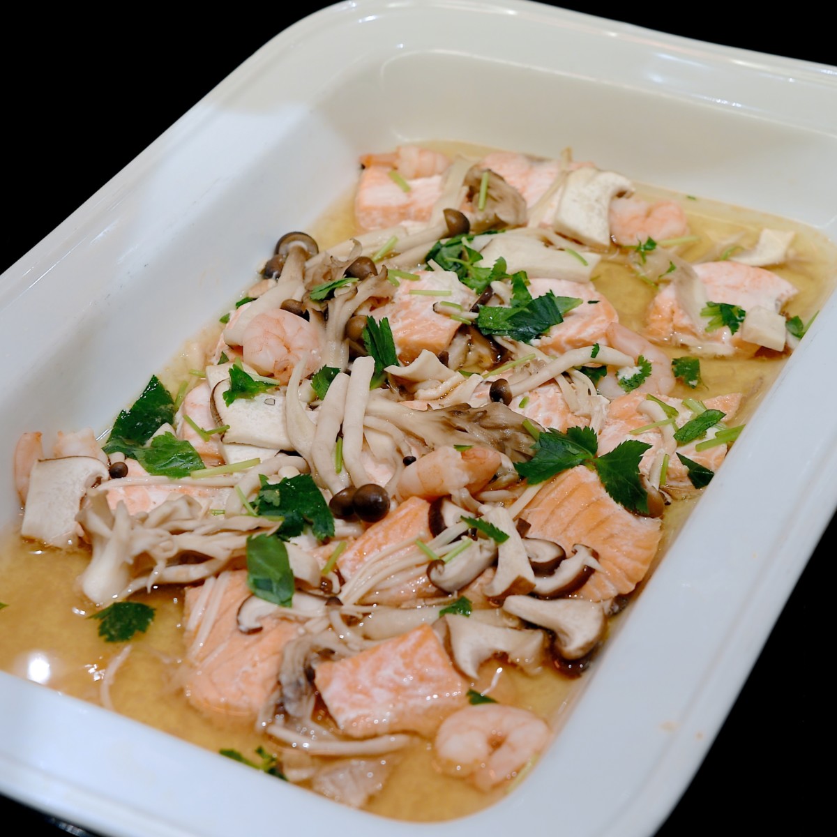 彩りも綺麗なサーモンときのこの蒸し焼き。
