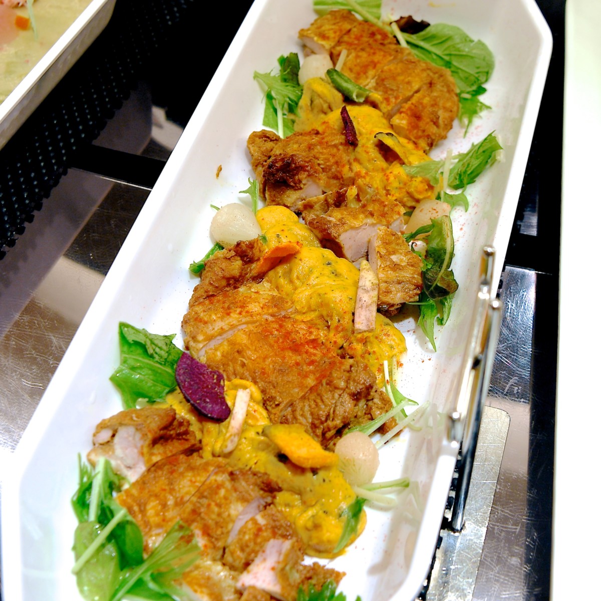 タンドリーチキンは旬なかぼちゃのサラダと一緒に。