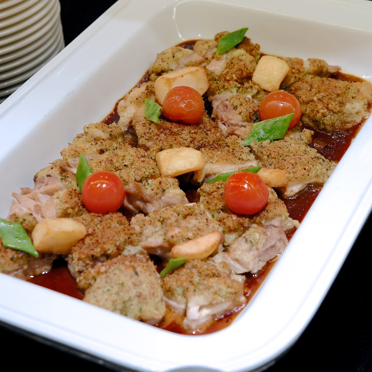 柔らかいポークはナッツたっぷりプラリネソースで。
