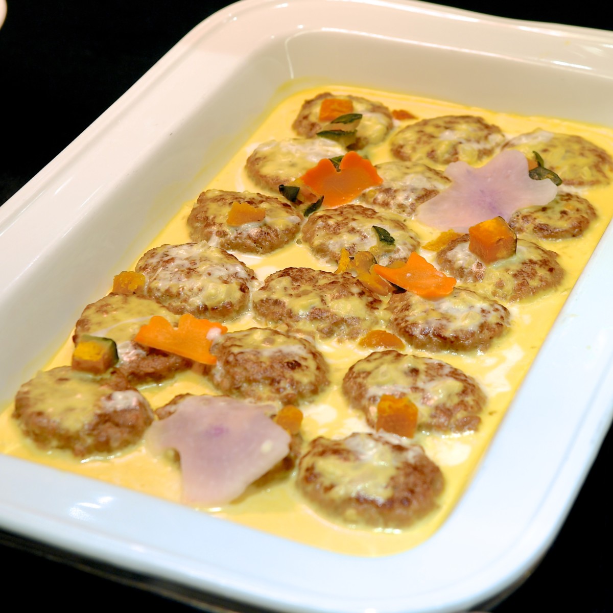 クリームソースがたっぷりかかったジューシーなハンバーグ。