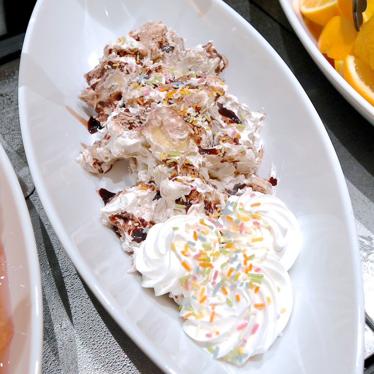ミッキーシェイプのホイップクリームがかわいい定番チョコレートバナナ。