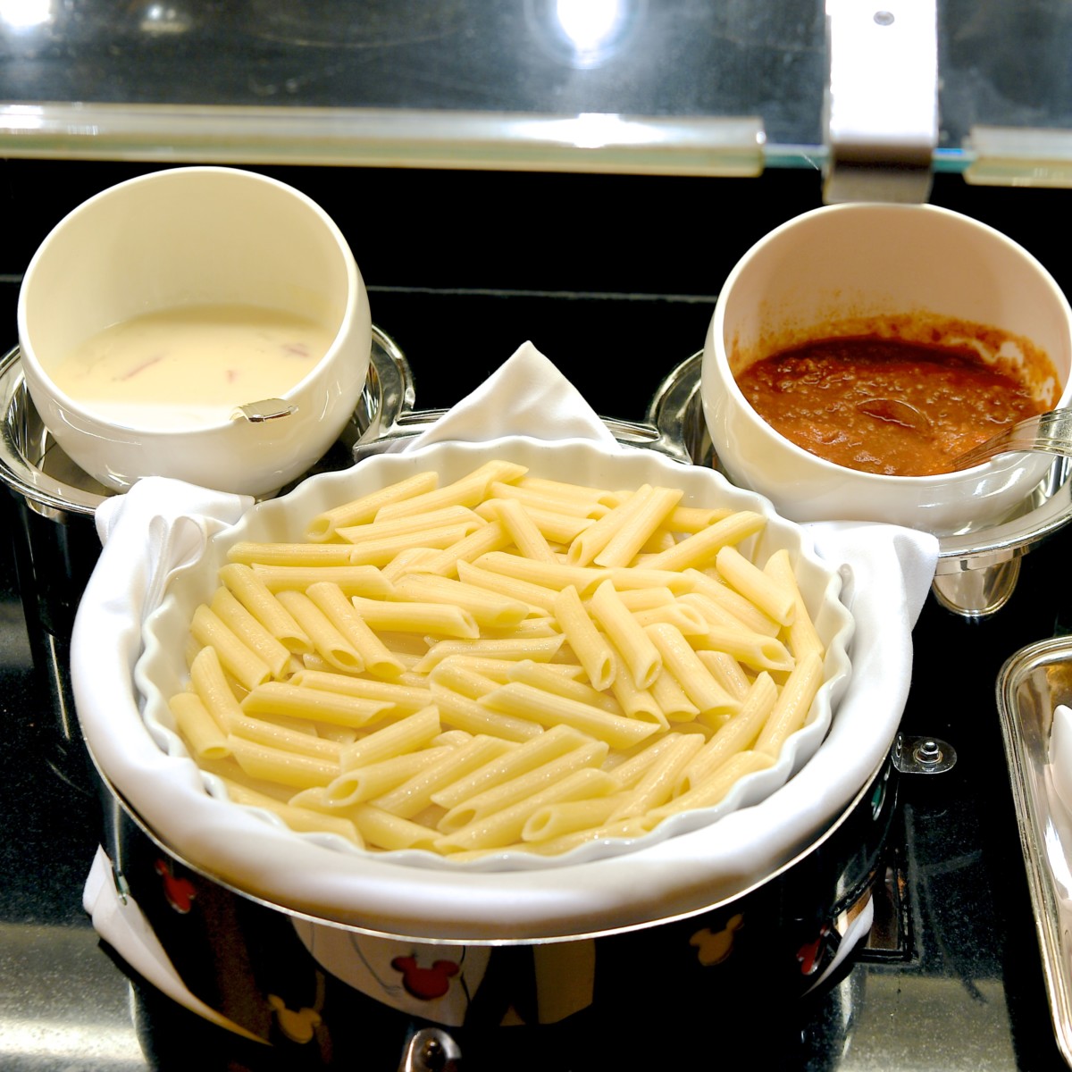 ペンネパスタはミートソース、クリームソースをお好みで。