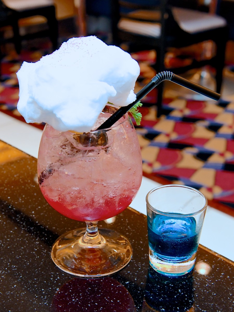 セブンアップ、 ジンジャーエール、ブラッドオレンジシロップ、ラズベリーシロップ、ブルーシロップ、ストロベリーパウダー、わたがし、チョコレート、セルフィーユ入りのシュワっと美味しいドリンクメニューです。