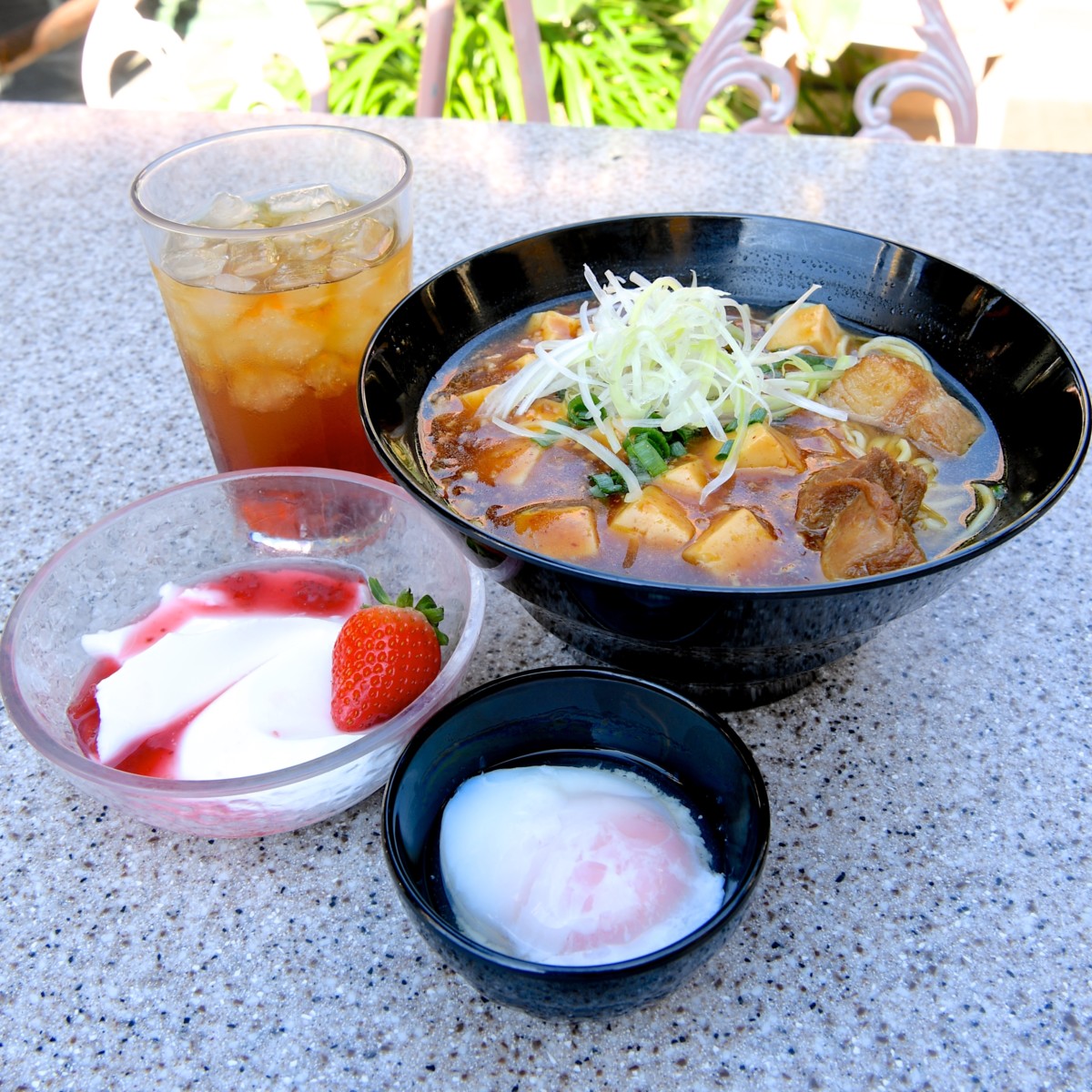 麻婆豆腐の辛さをまろやかにしてくれる半熟玉子も付いています。