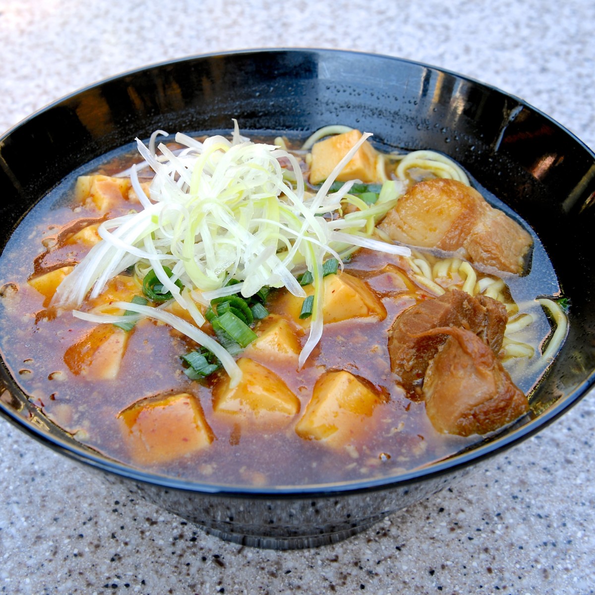 ひき肉がたっぷりはいった麻婆豆腐もトッピングされたラーメンです。