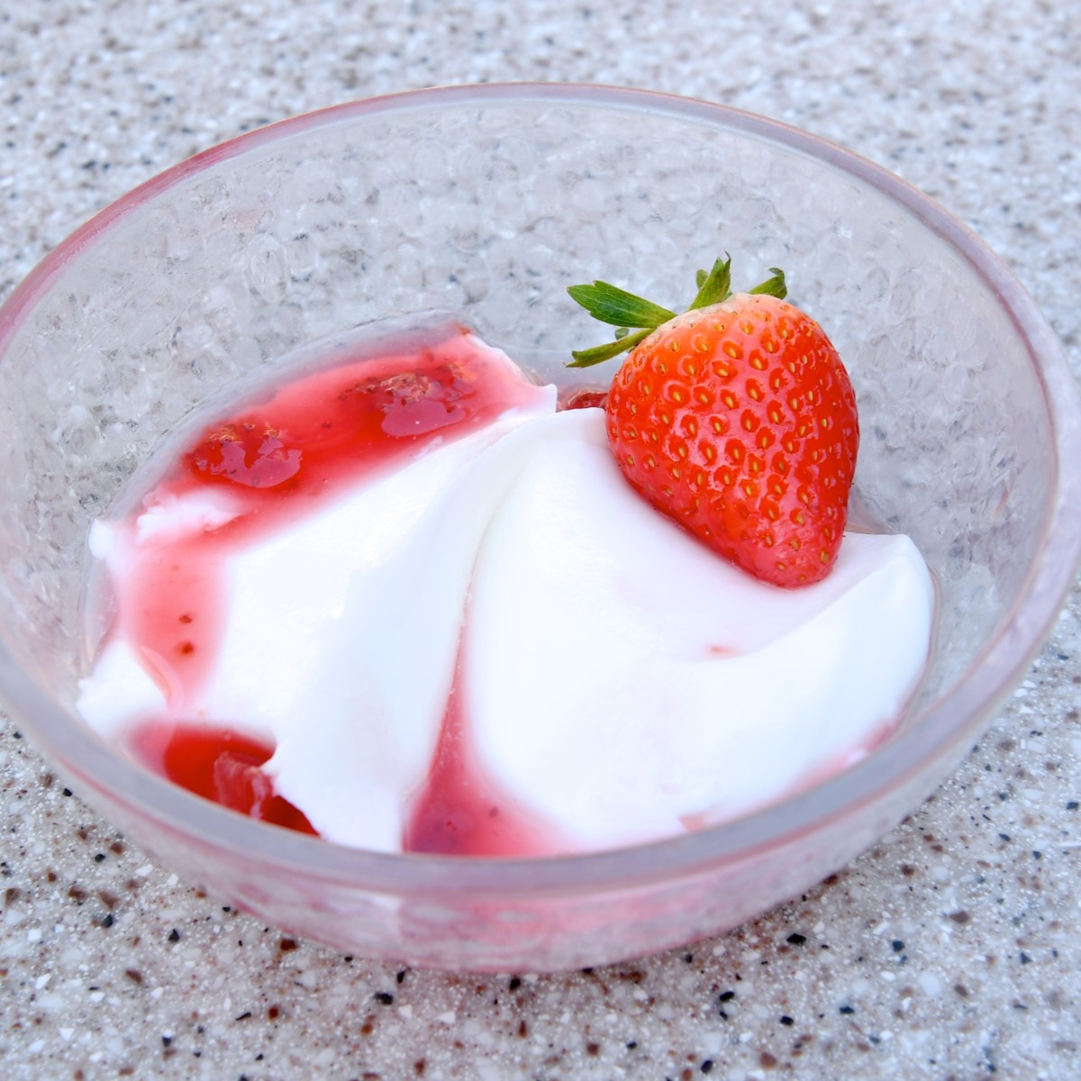 フレッシュないちごがトッピングされた杏仁豆腐。