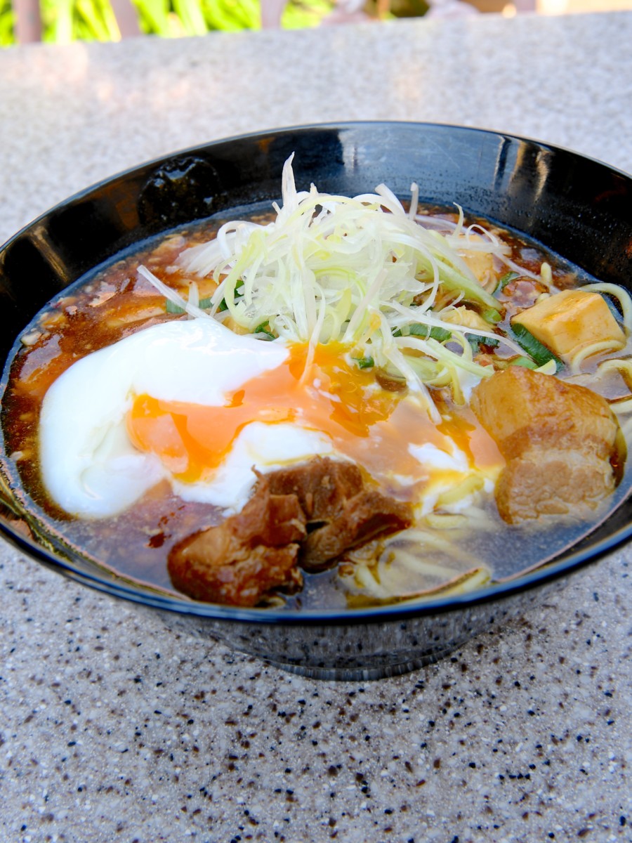 半熟たまごを崩し、麺とあえるとマイルドな味付けが楽しめます。
