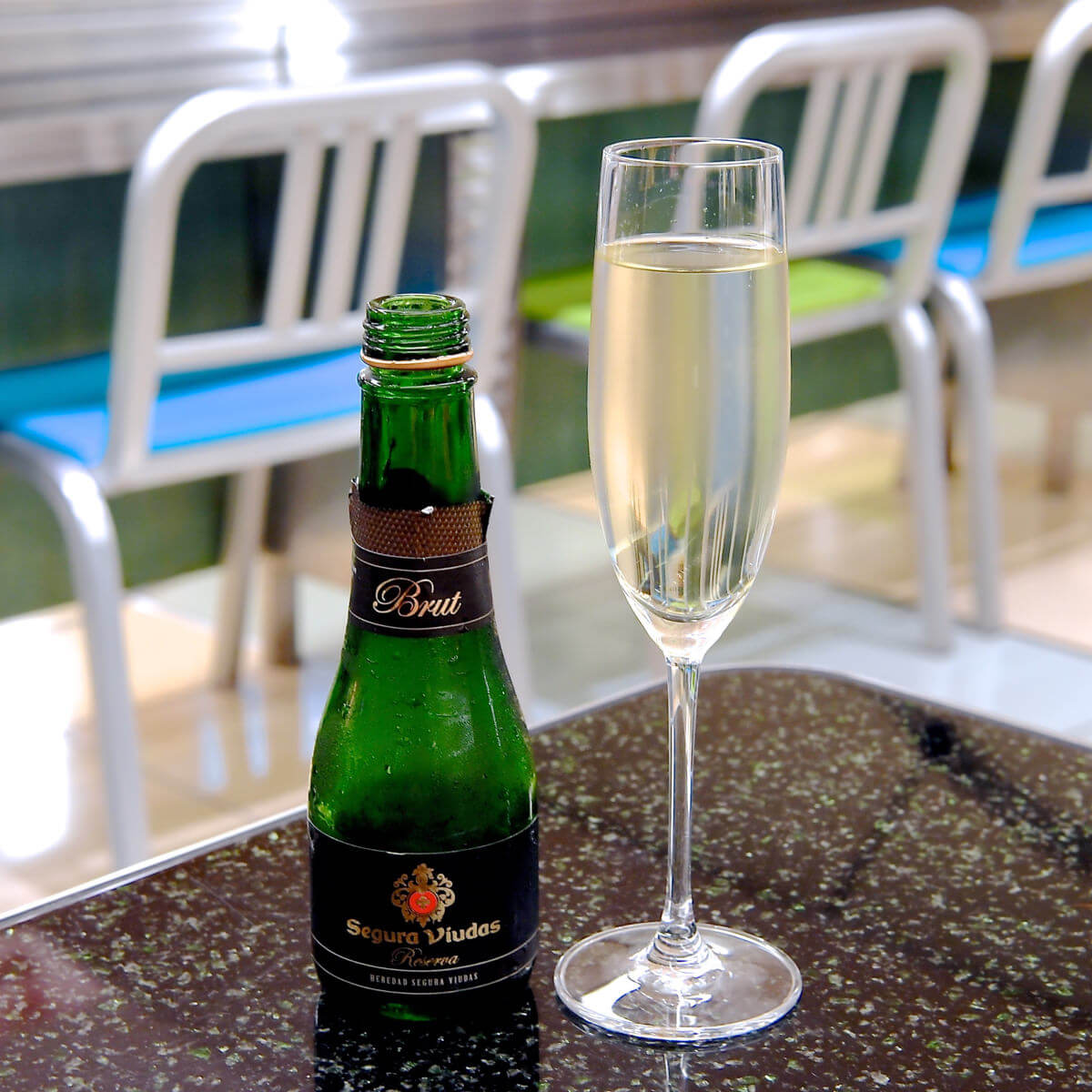 アルコールメニューは生ビールとスパークリングワインを提供。