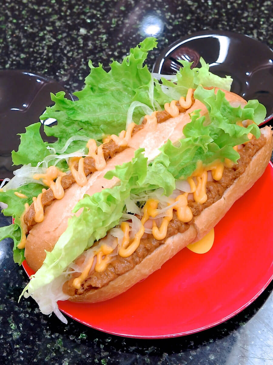 2本のソーセージがサンドされたお腹いっぱいになれるメニューです。