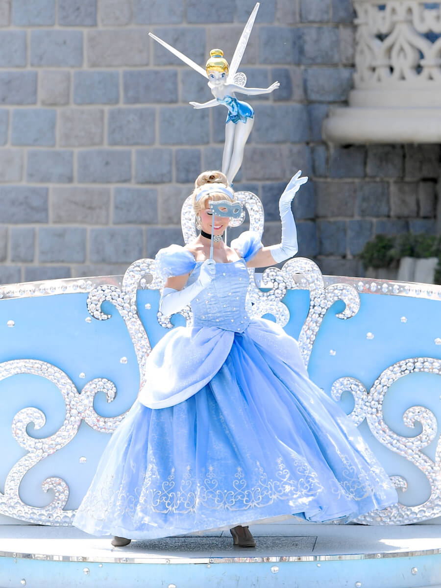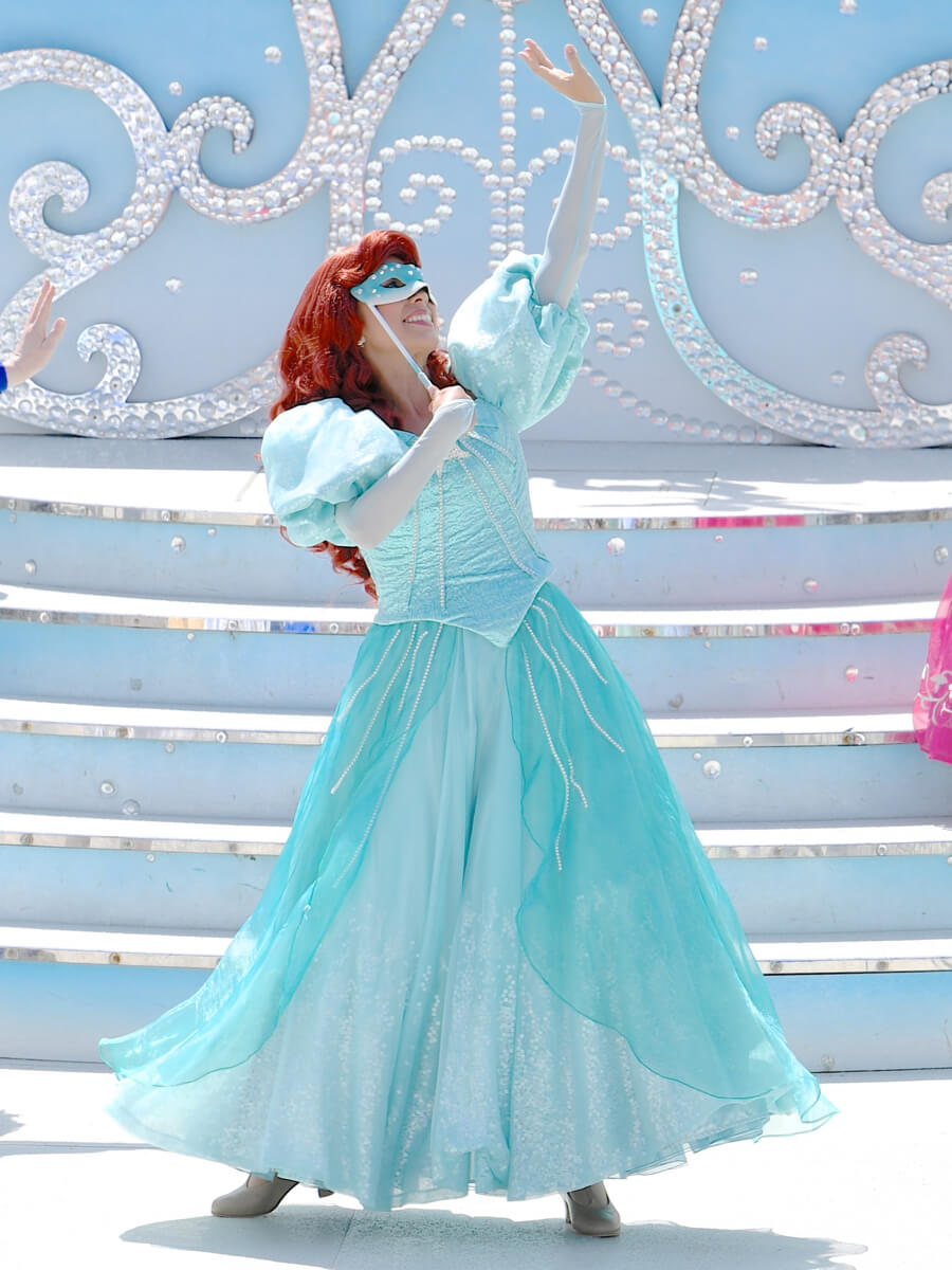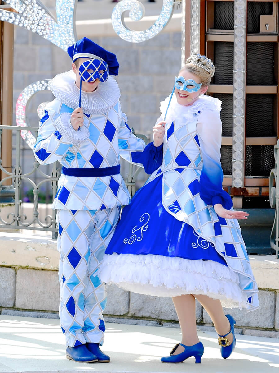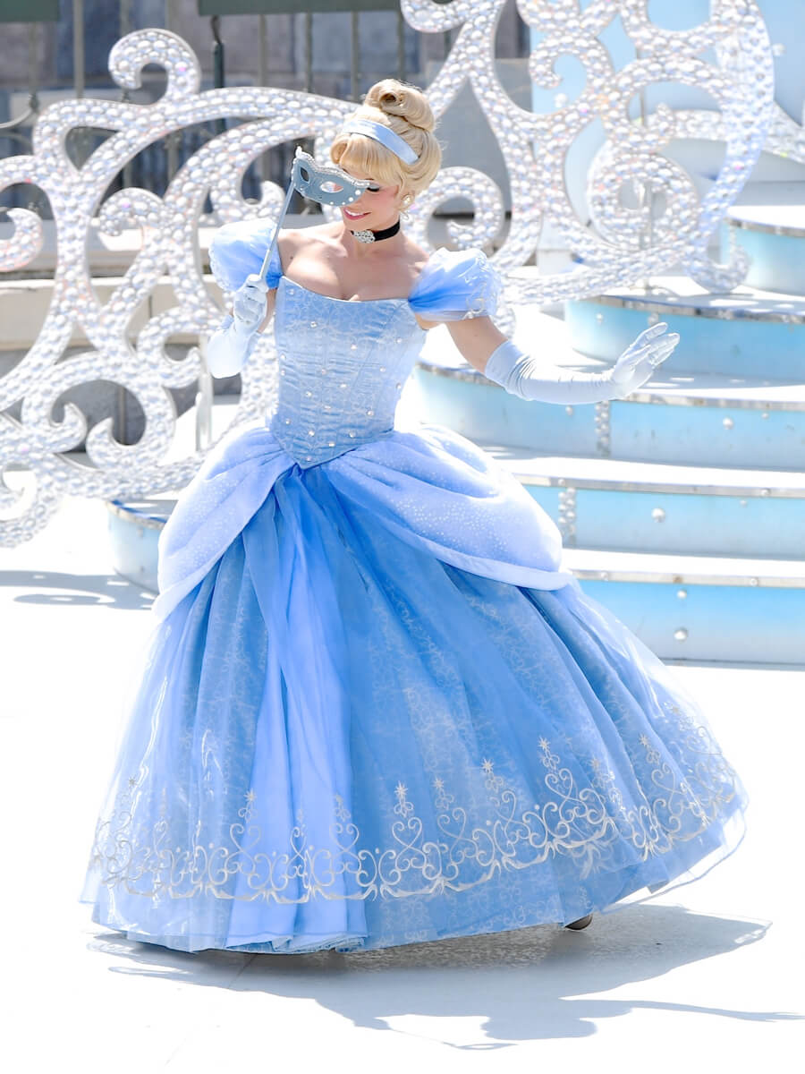 続いてマスカレードマスクを持ったブルーのドレス姿が美しいシンデレラが登場。