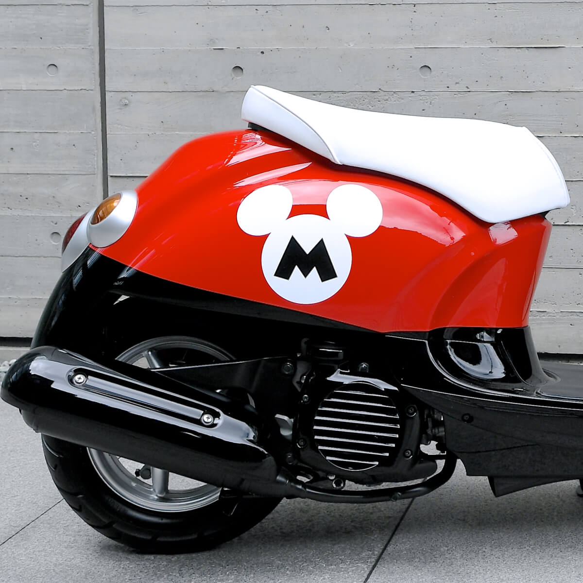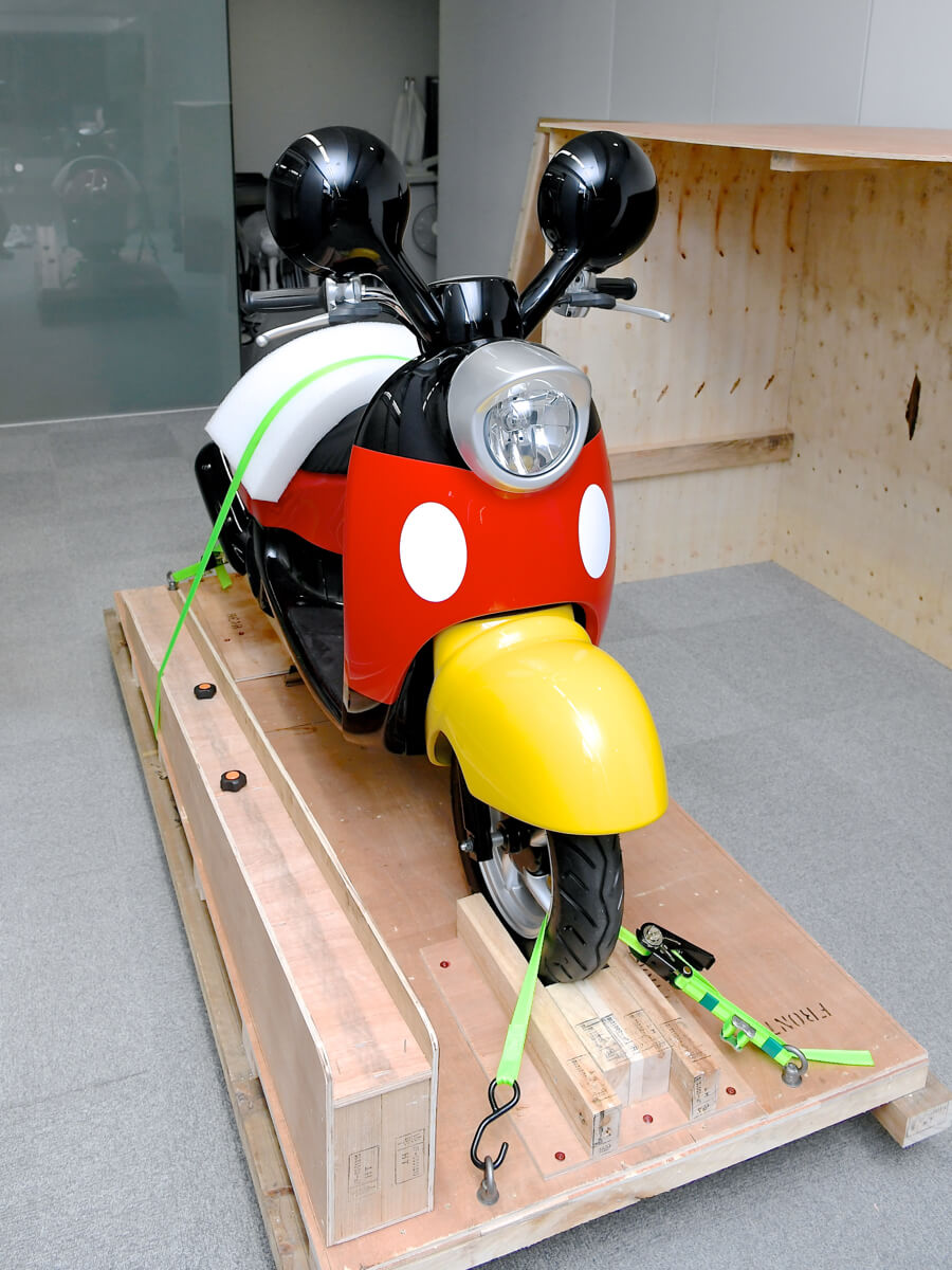 ディズニーモータースの中でも、ミッキーをモチーフにしたフォルムで人気のバイク「チムチム」をライフサイズで再現!