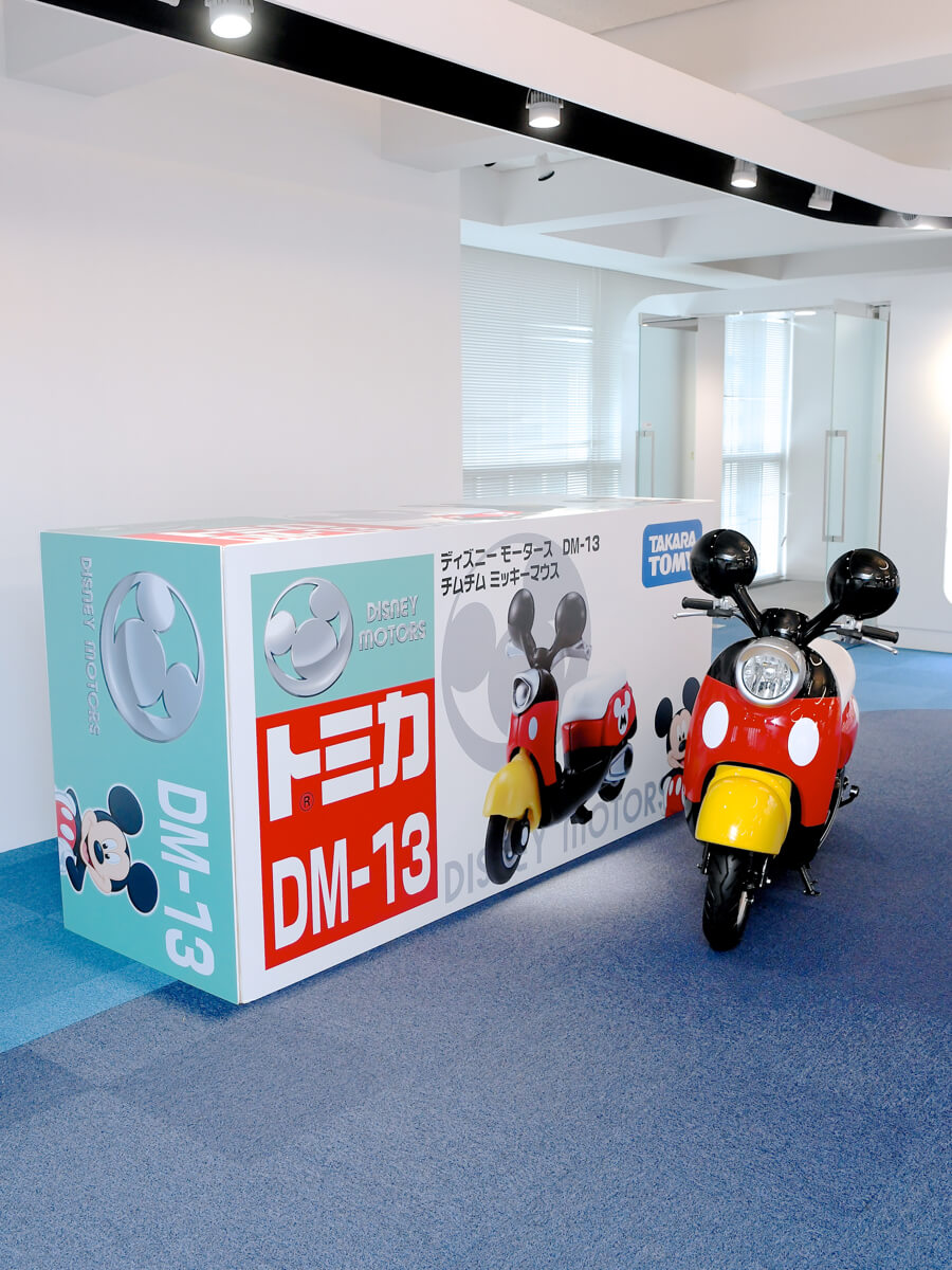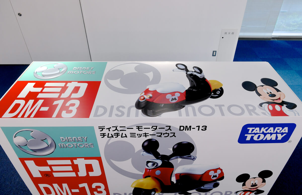 ライフサイズ「チムチム」プロジェクトは実車だけではなく、「トミカ ディズニーモータース DM-13 チムチム ミッキーマウス」のパッケージも再現☆