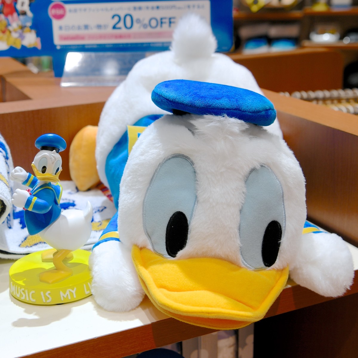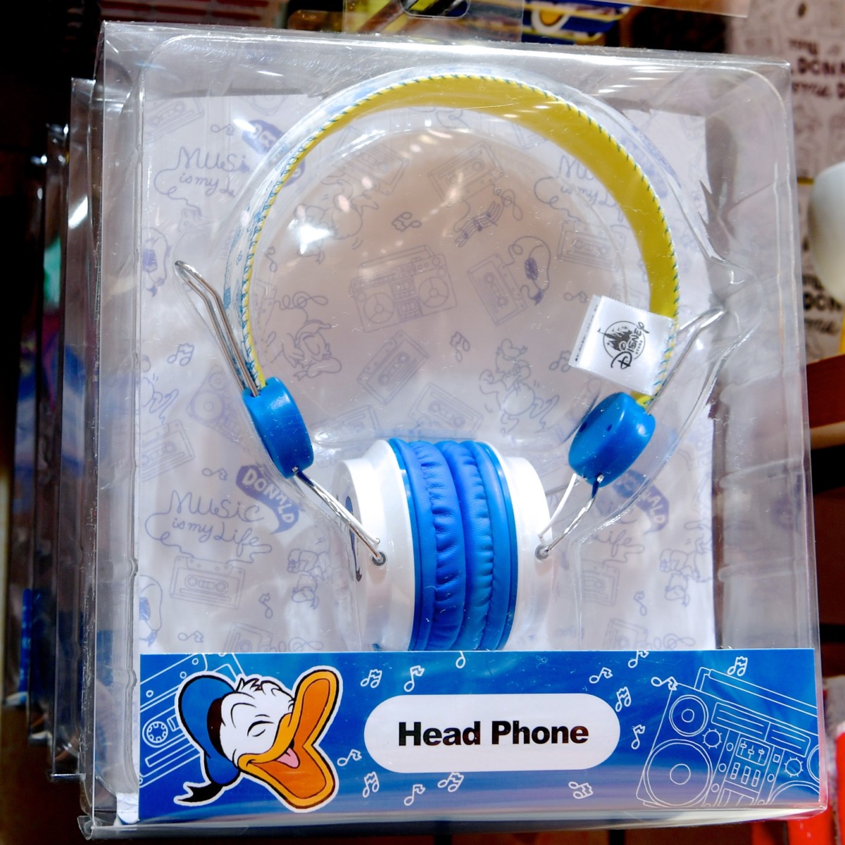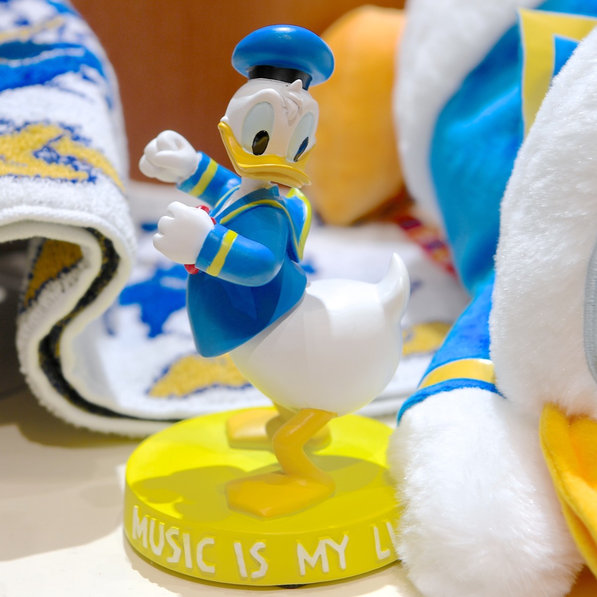 Music is my life.とデザインされたドナルドのフィギュア。