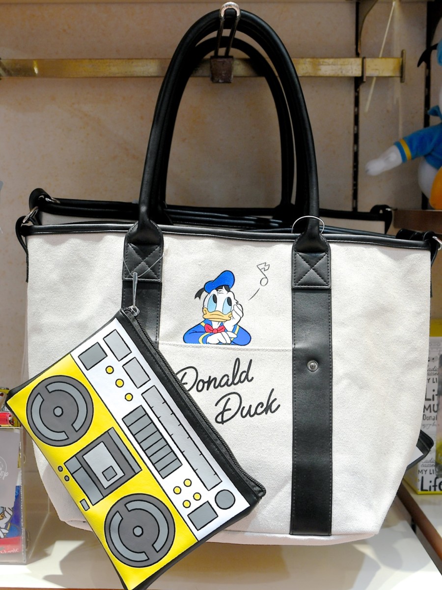 カセットテープデザインのポーチが付いたドナルドのトートバッグ。