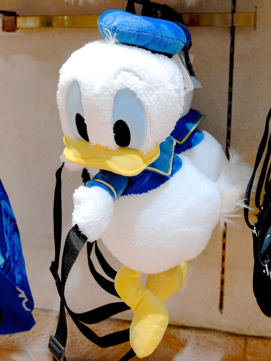 ドナルドをつれて歩いているかのように見えるリュックサック。