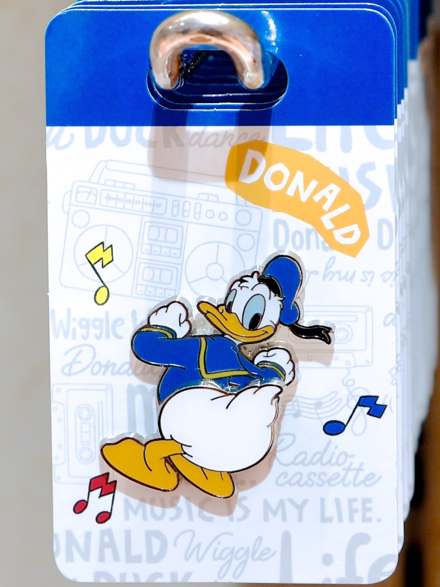 おしりをふりふりするドナルドがかわいいピンバッジ。