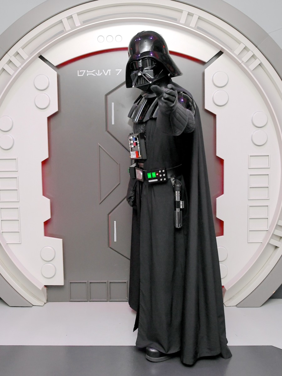 長身で威圧感のあるベイダー卿とのグリーティング。