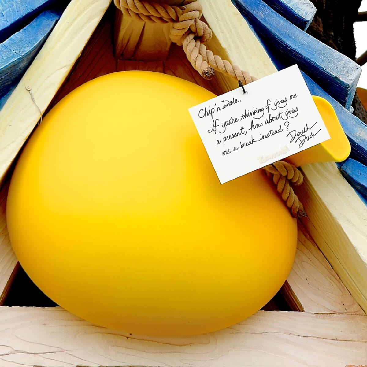 (チップとデールへ。もしきみたちがぼくへのプレゼントを考えてくれているなら、代わりにぼくを休ませてくれないかな?)