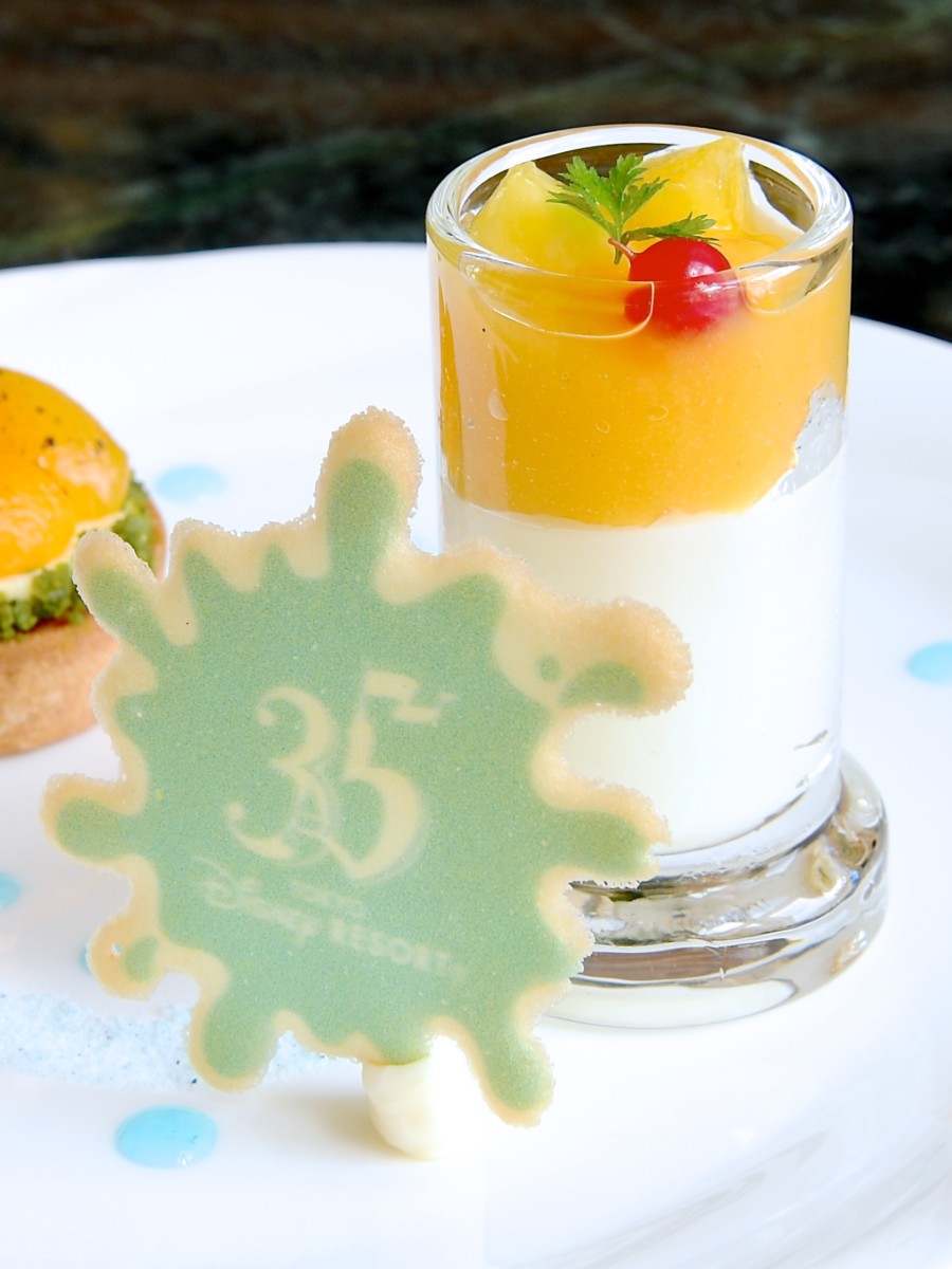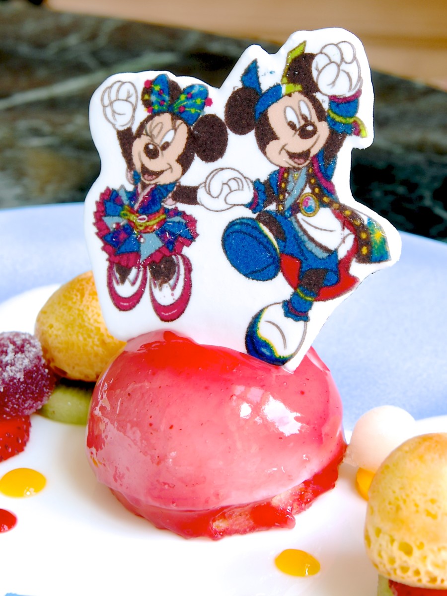『燦水!サマービート』コスチュームのミッキー、ミニーをデザインした砂糖菓子がかわいいミックスベリー入りヨーグルトムース。