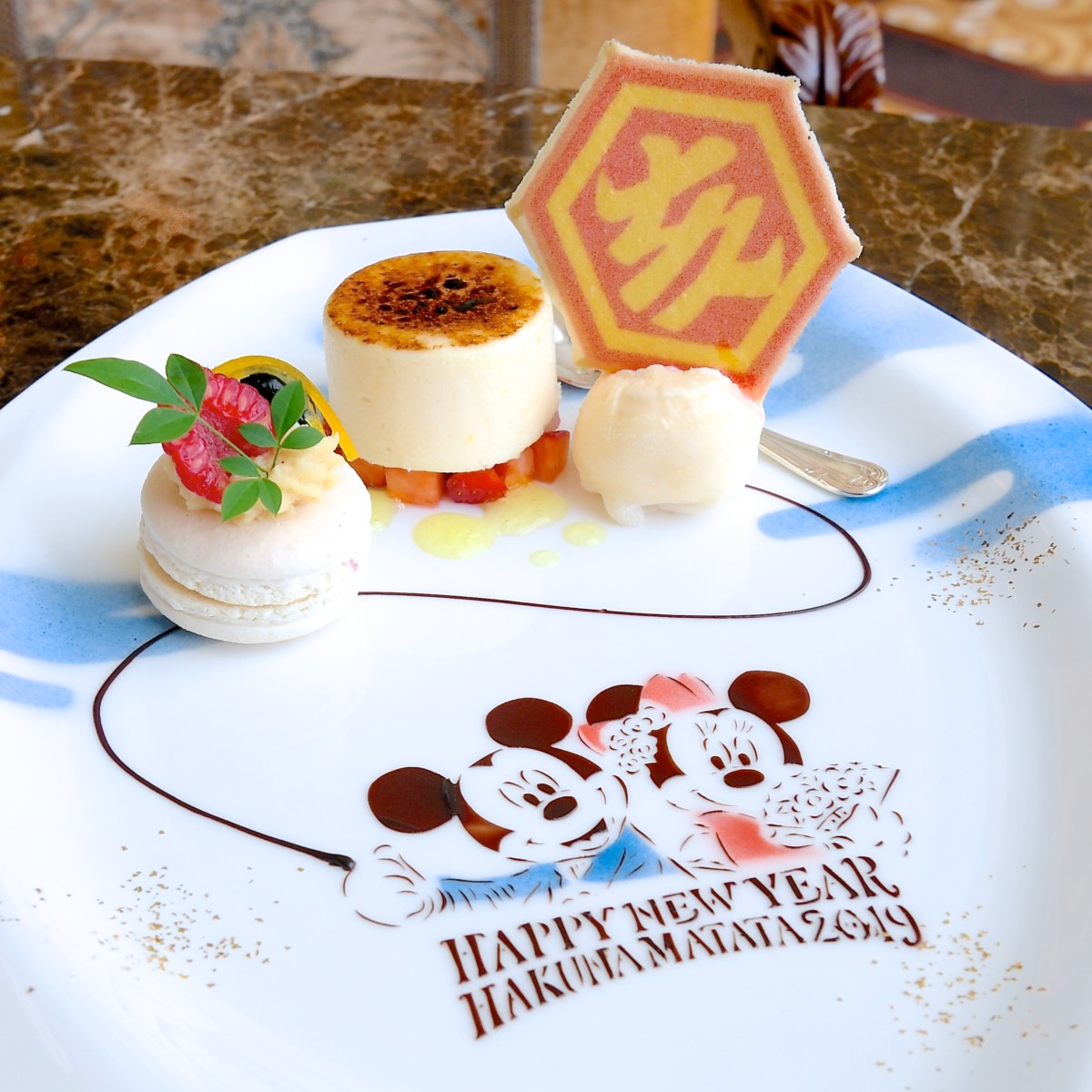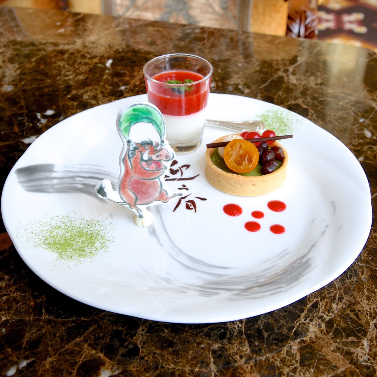 2019年の干支である亥年(イノシシ)にあわせて、ディズニー映画『ライオン・キング』のプンバァがプレートに大きくデザインされています。
