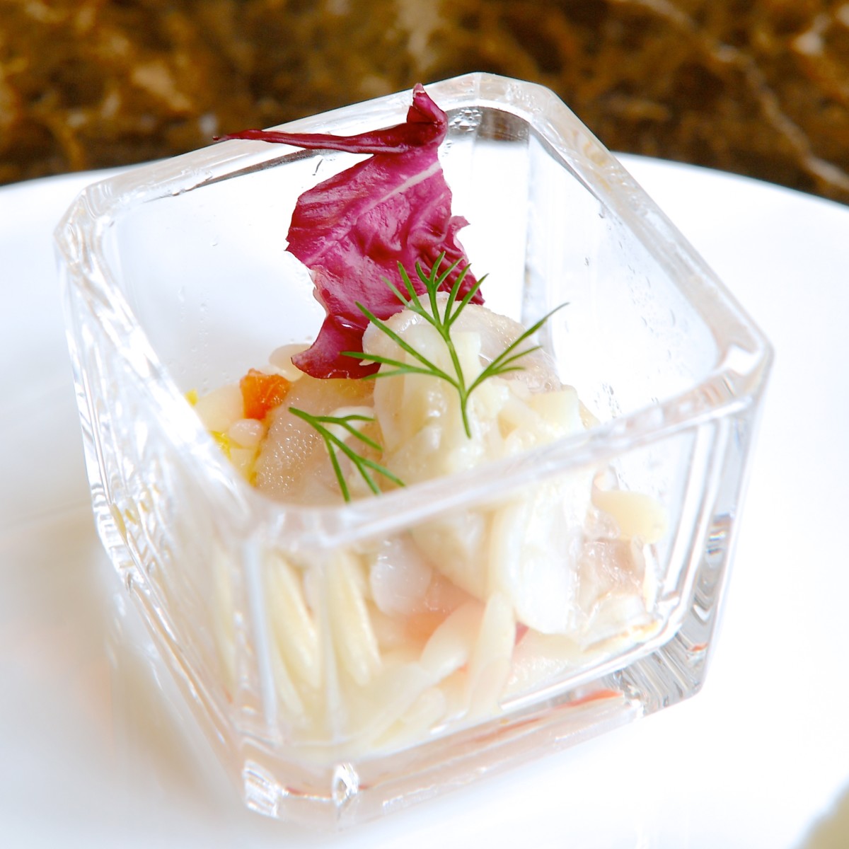 さっぱり柚子風味でいただく帆立貝のマリネ。